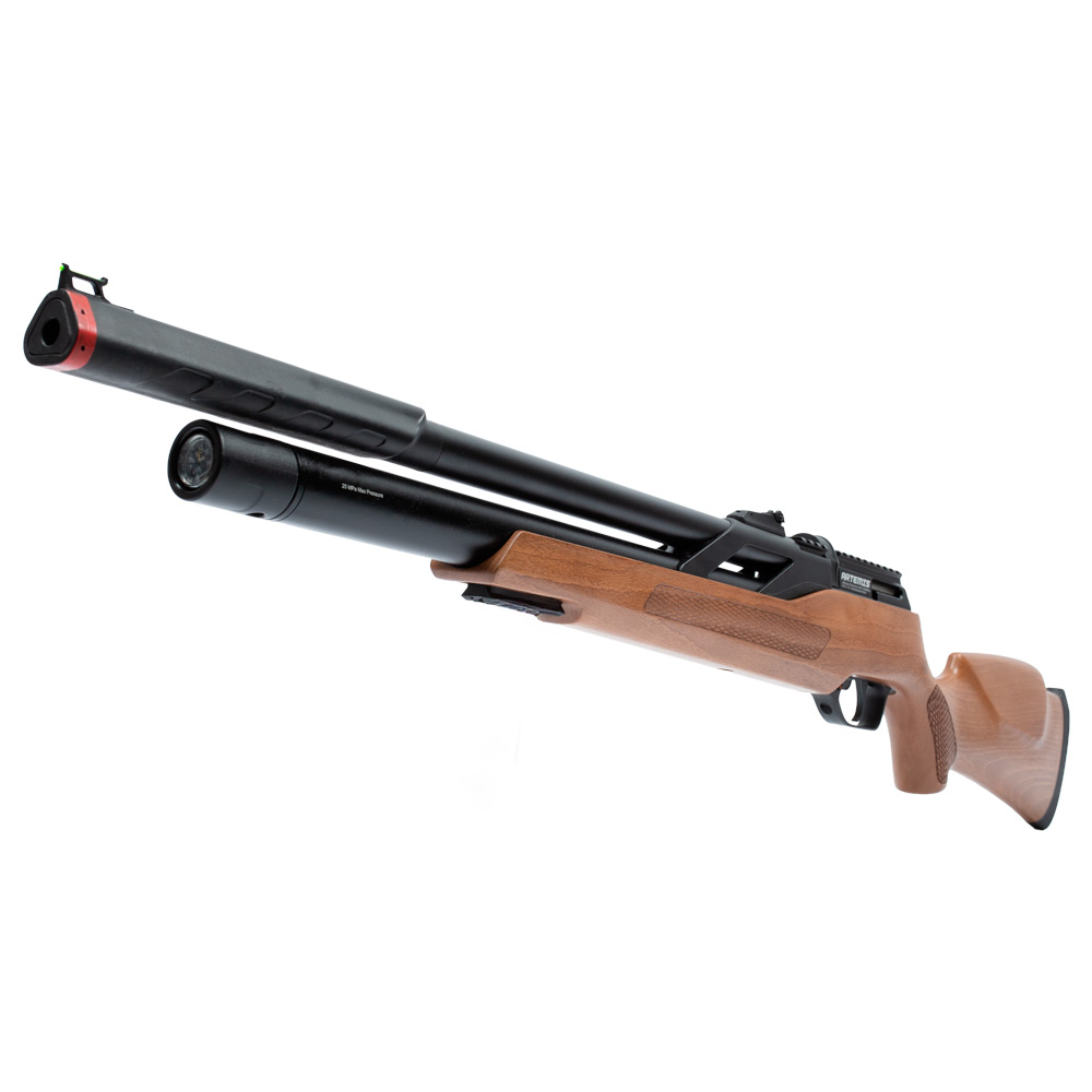 No calibre 5.5 mm, a T-Rex Wood atinge velocidades de até 289 m/s (950 fps), proporcionando disparos consistentes e eficientes em médias e longas distâncias. Seu sistema PCP com cilindro de 230 cc trabalha com pressão de até 250 bar, garantindo boa autonomia de disparos por carga. A presença de válvula reguladora contribui para maior constância entre os tiros, elevando o nível de precisão.