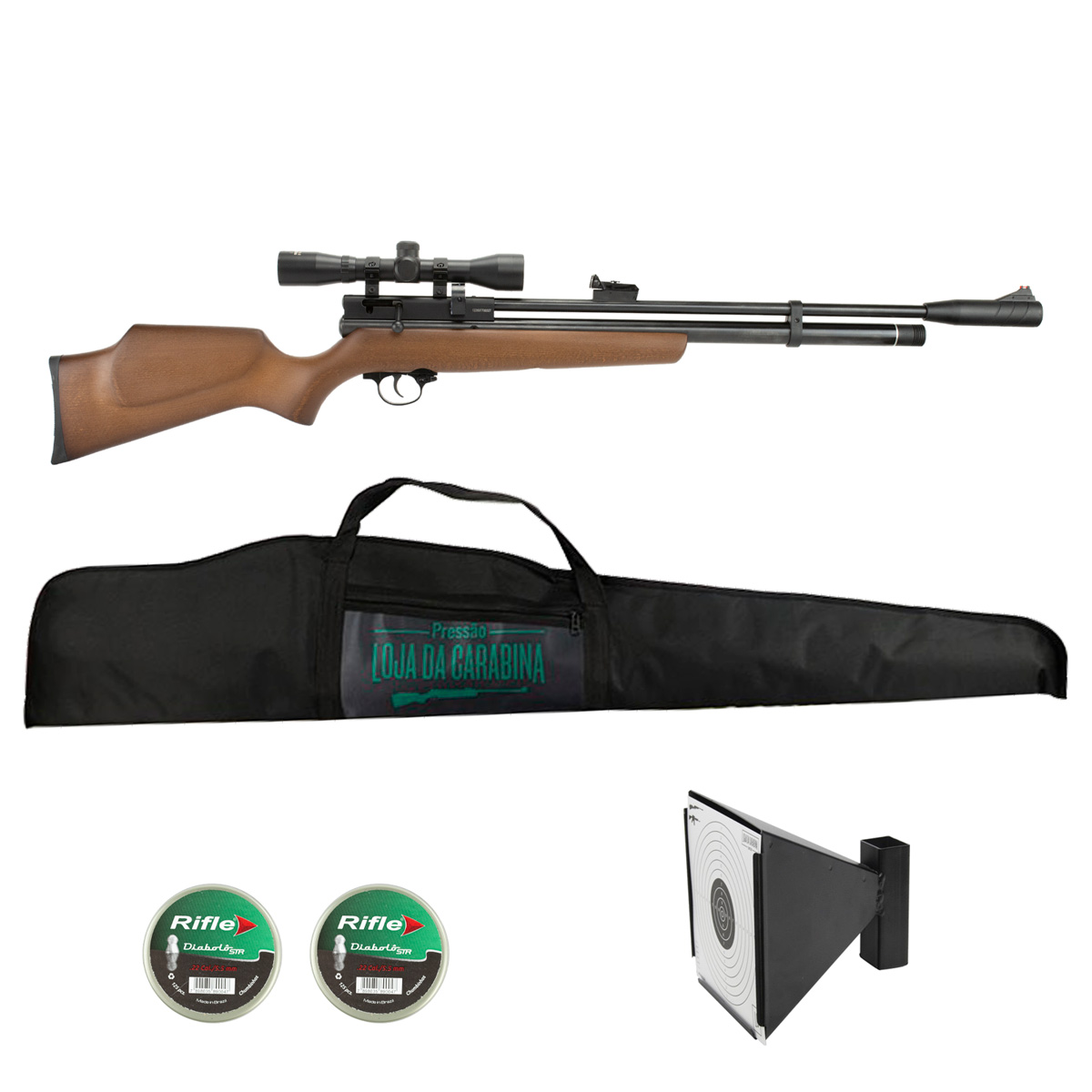 CARABINA PCP BEEMAN 1338 + LUNETA 4X32 + CAPA + ALVO COLETOR + CHUMBINHOS 5.5MM
