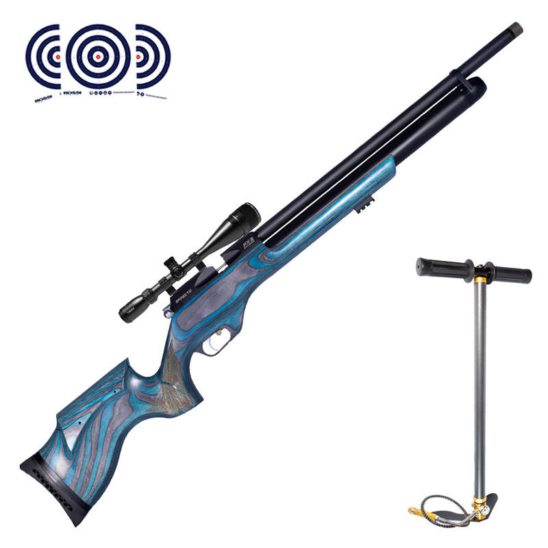CARABINA PCP PX-5 PRO EFFECTO 5.5 MM - LAMINADO AZUL + BOMBA MANUAL PCP + LUNETA 6-24X50 + ALVOS ROSSI