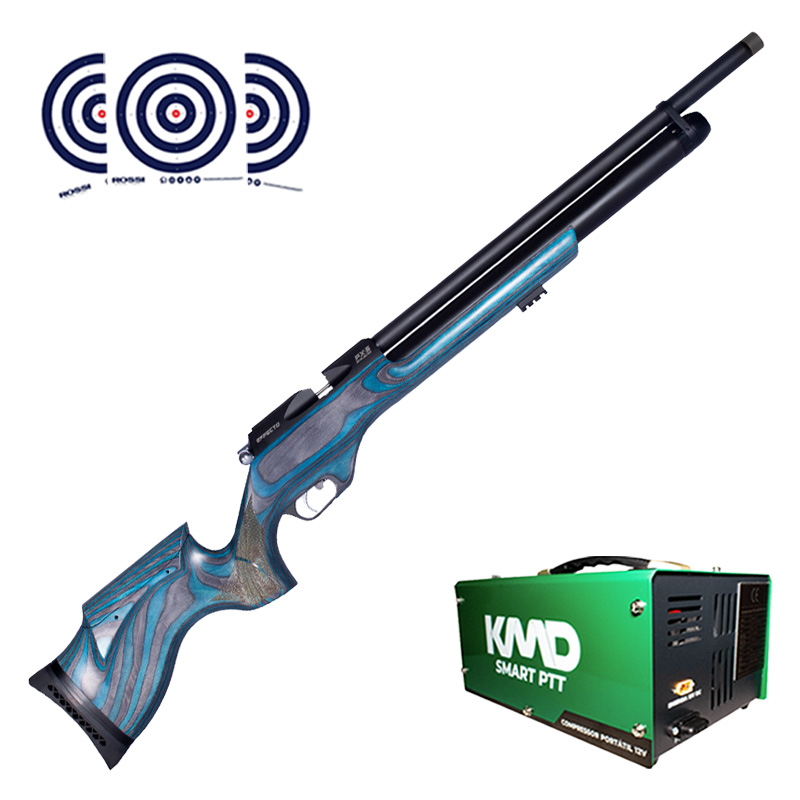 Carabina PCP Effecto PX-5 PRO Laminado Azul 5.5mm + Compressor de AR KMD + Alvos