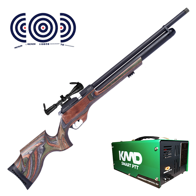 CARABINA PCP PX-5 PRO EFFECTO 5.5 MM VERDE + COMPRESSOR KMD + LUNETA 4-12X42 + ALVOS ROSSI
