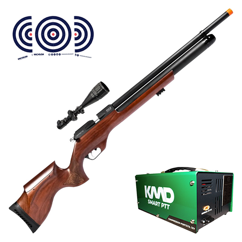 Carabina PCP Effecto PX-5 PRO Wood 5.5mm + Compressor de AR KMD + Luneta 6-24x50 + Alvos