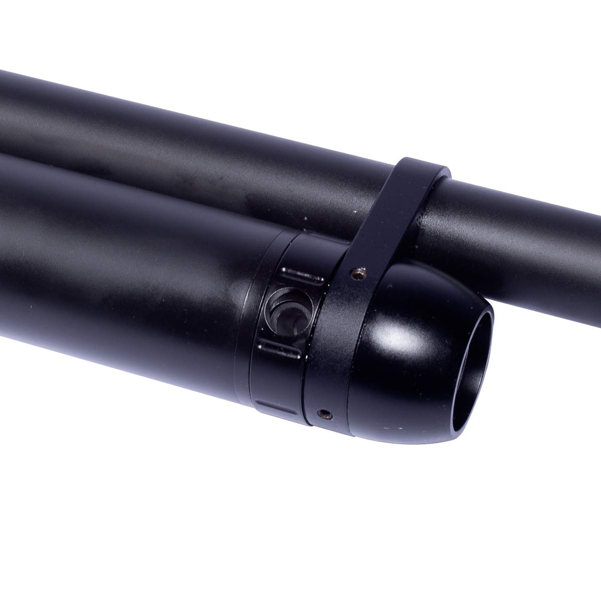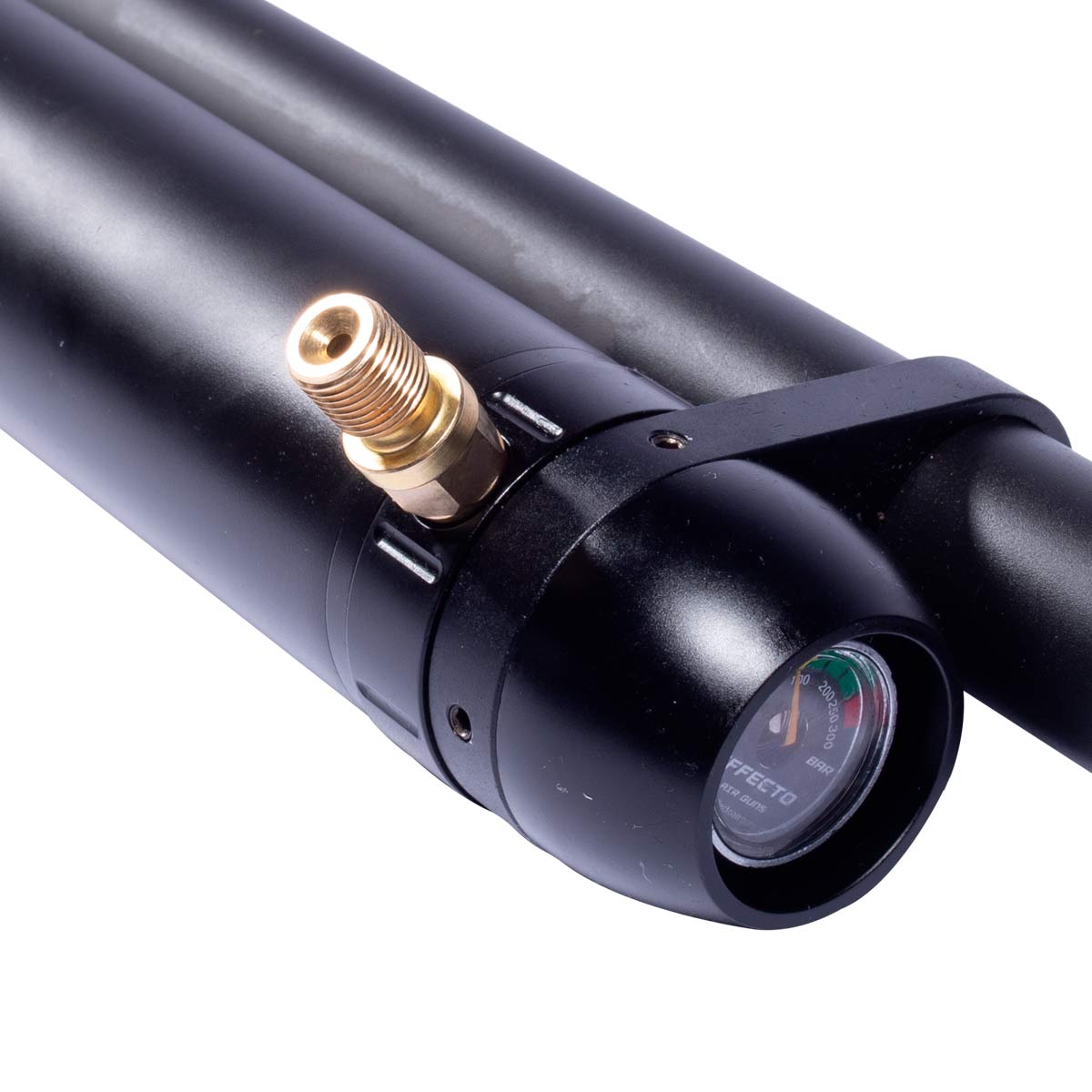 Carabina com sistema PCP (Pre Charged Pneumatic), que utiliza um cilindro de ar fixo fabricado em alumínio T6 7012 que tem capacidade de 300 cc e entrega uma autonomia de aproximadamente 75 disparos com desempenho consistente e preciso com pressão uniforme.