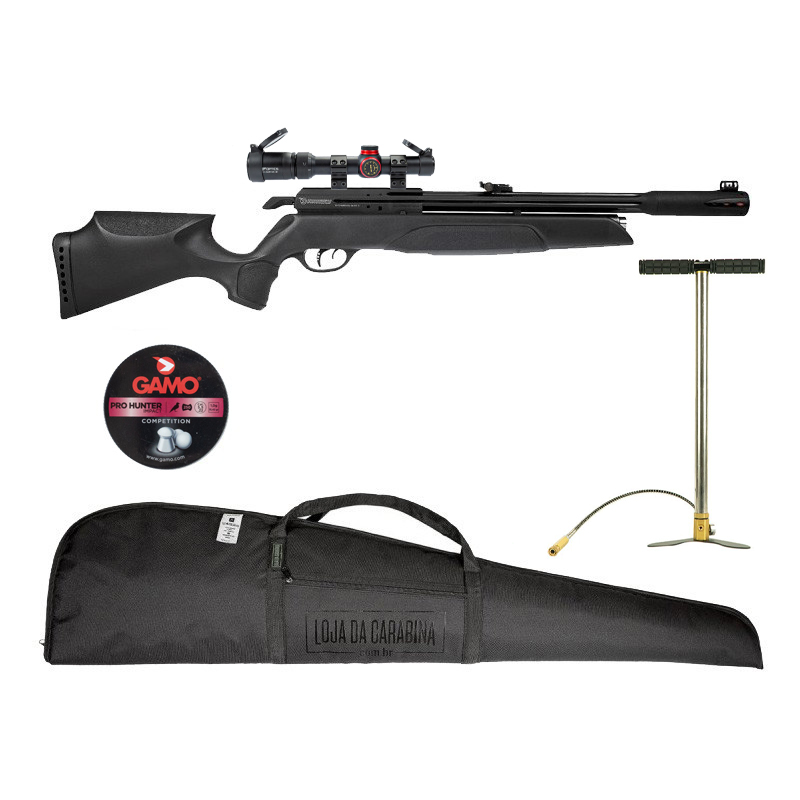 CARABINA GAMO PCP ARROW + LUNETA 1.5-5X20 + BOMBA MANUAL ROSSI + CHUMBINHO + CAPA