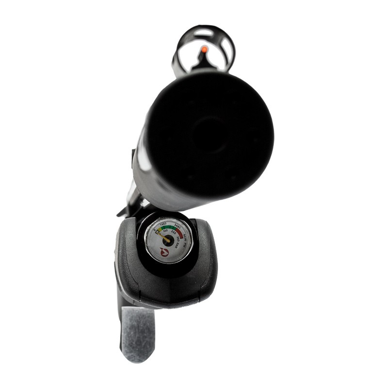 Conta com manômetro de pressão integrado para controle da pressão do cilindro de ar.