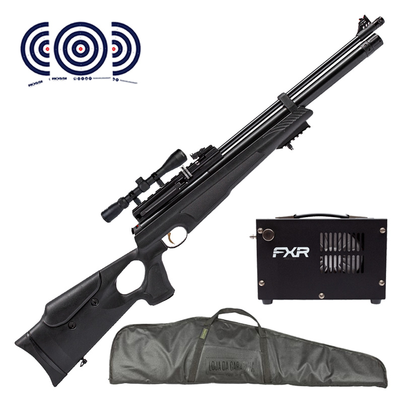 Combo premium feito para você! Conta com Compressor de Ar FXR Portátil para facilitar no preenchimento do cilindro da sua carabina, Luneta 3-9x40 Thunder Outdoors para melhor visada dos alvos, Capa Magnum com 115 cm de comprimento LojaDaCarabina para proporcionar segurança ao armazenar seu equipamento e Alvos de Treino Rossi.