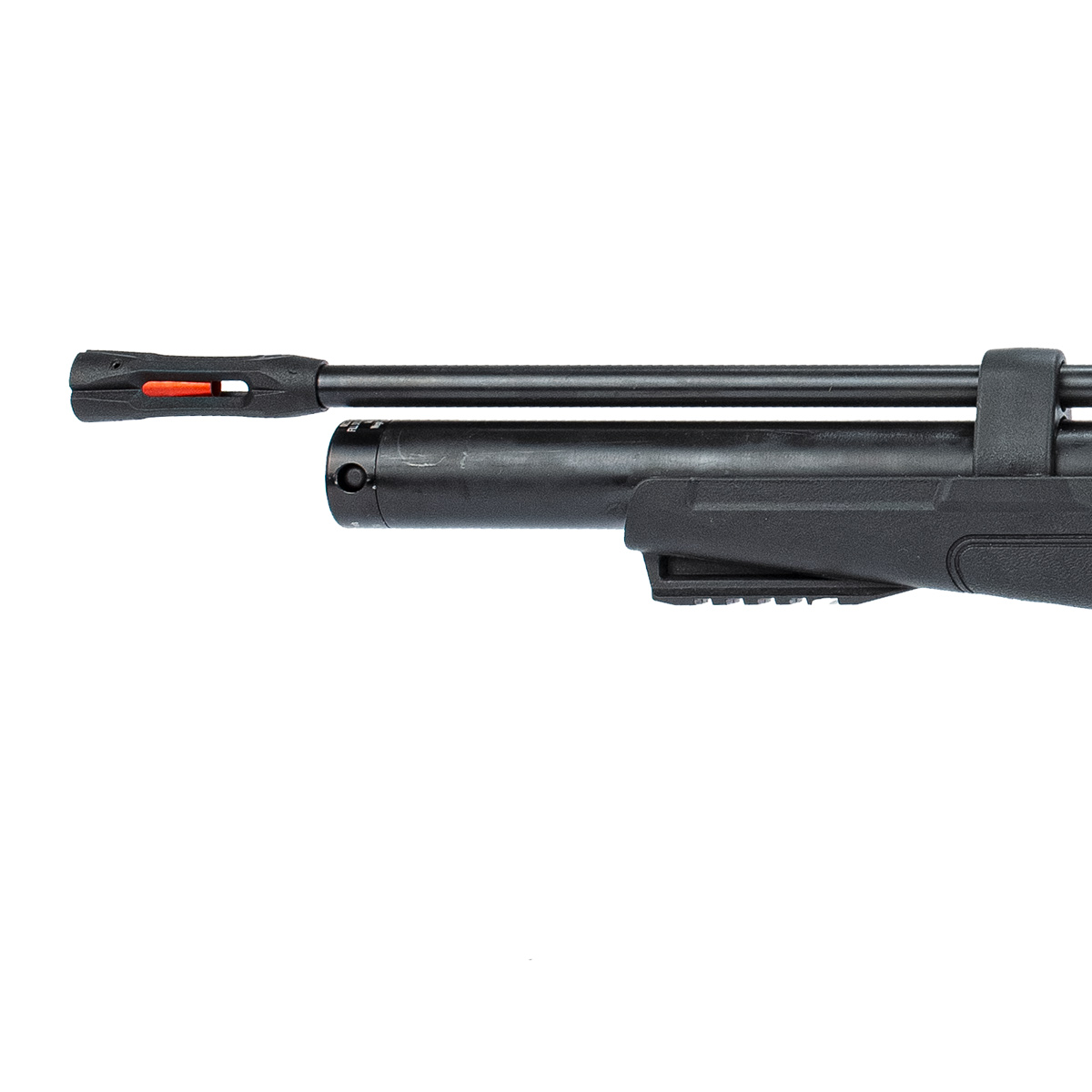 O cilindro de ar da Hatsan Flash tem capacidade de ar de 215 cc e trabalha em uma pressão máxima de 200 bar e mínima de 70 bar.