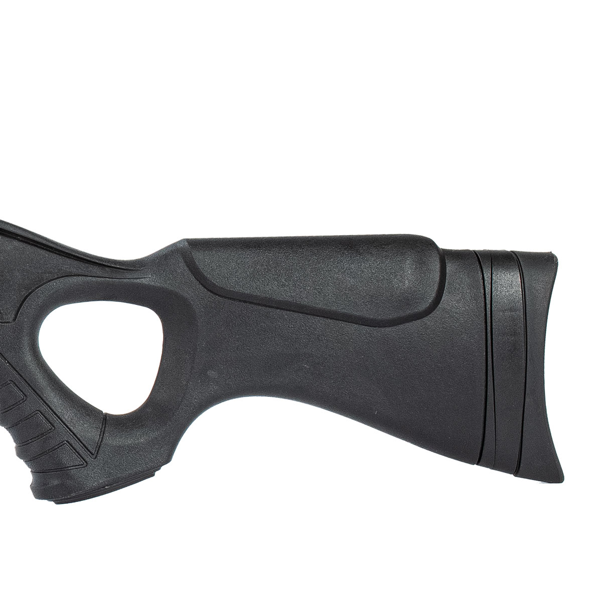 Essa linda Carabina conta com uma coronha em polímero, vazada e ambidestra no estilo tático, que é super confortável e fácil de manusear, junto com sua empunhadura estilo pistola (pistol grip) que oferece alta aderência na pegada e é ergonômica.