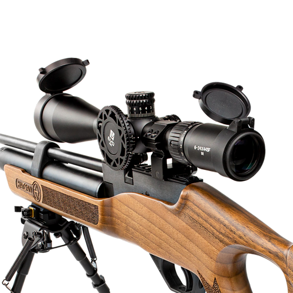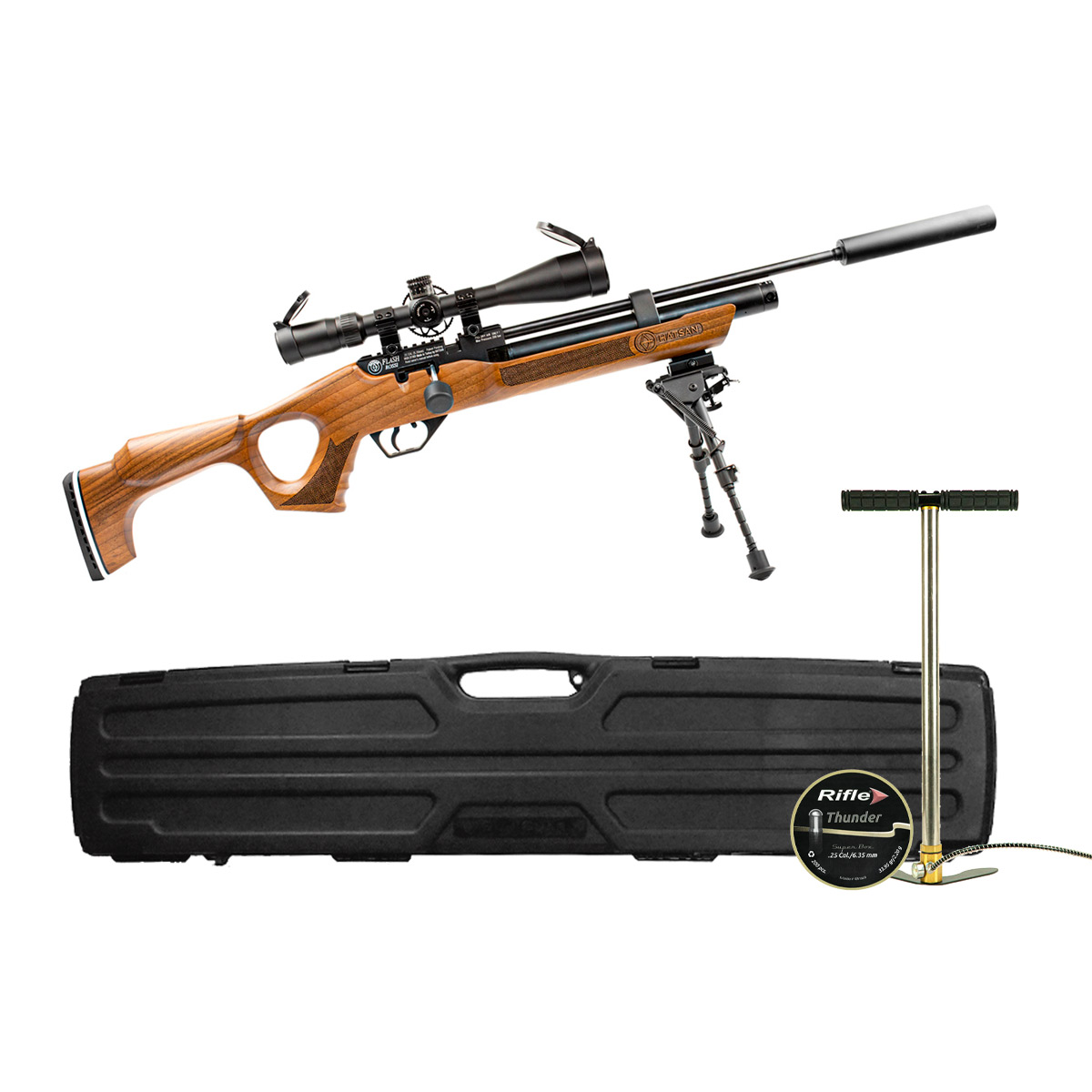 CARABINA HATSAN PCP FLASH 6.35MM COM LUNETA 6-24X44 + BIPÉ + SUPRESSOR + BOMBA MANUAL + CASE RÍGIDA E CHUMBINHO
