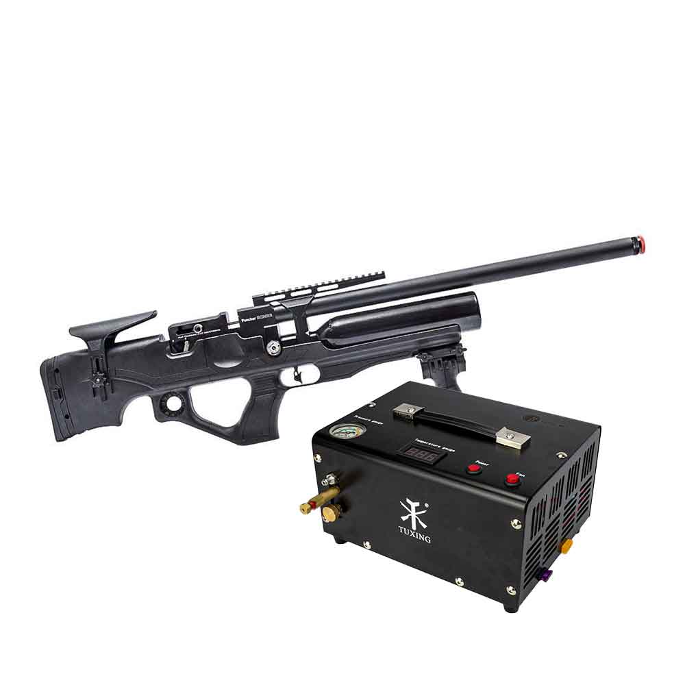 Carabina PCP Kral Arms Bullpup Semi Auto 5.5mm + Compressor Portátil PCP Rossi Tuxing 300 BAR