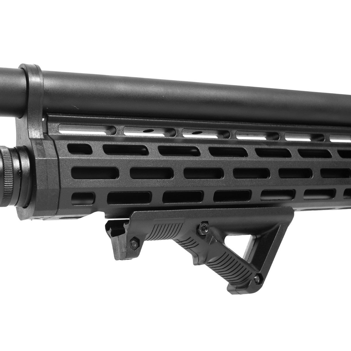Seu handguard é full M-LOK e possui um trilho picatinny 20 mm na parte inferior para instalação de bipé para tiros com apoio.