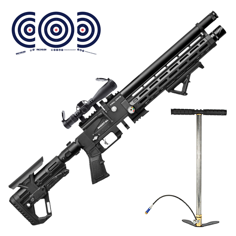 Carabina PCP Kral Arms Puncher Mortal X Tactical 5.5mm + Bomba Manual PCP + Luneta 4-16x40 + Alvos