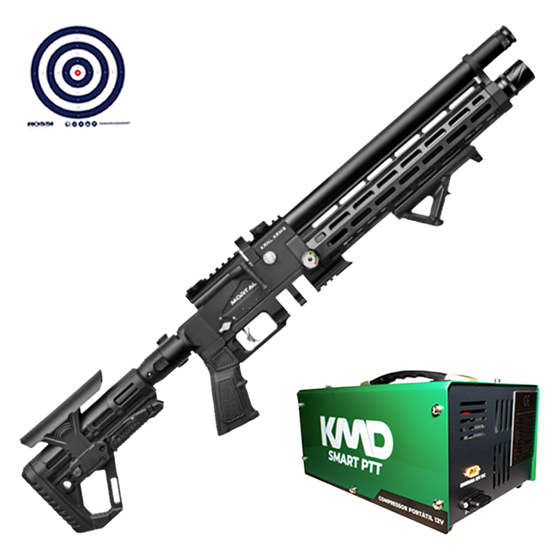 Combo Criado pela LojaDaCarabina contendo Compressor de Ar KMD para enchimento do cilindro da sua PCP e Alvos de Treino Rossi.