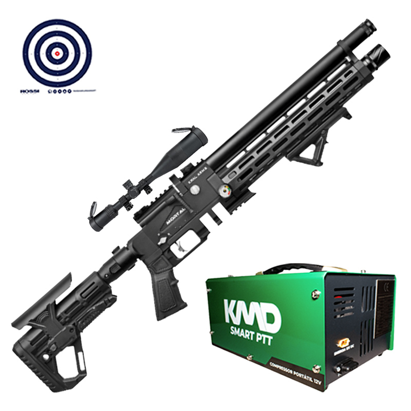 Carabina PCP Kral Arms Puncher Mortal X Tactical 5.5mm + Compressor de AR + Luneta 3-9x40 + Alvos