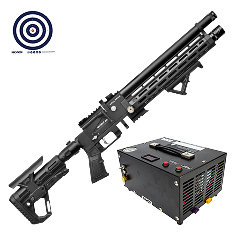 Combo com o Compressor de Ar Portátil para recarregar o cilindro da sua carabina de pressão e Alvos de Treino Rossi.