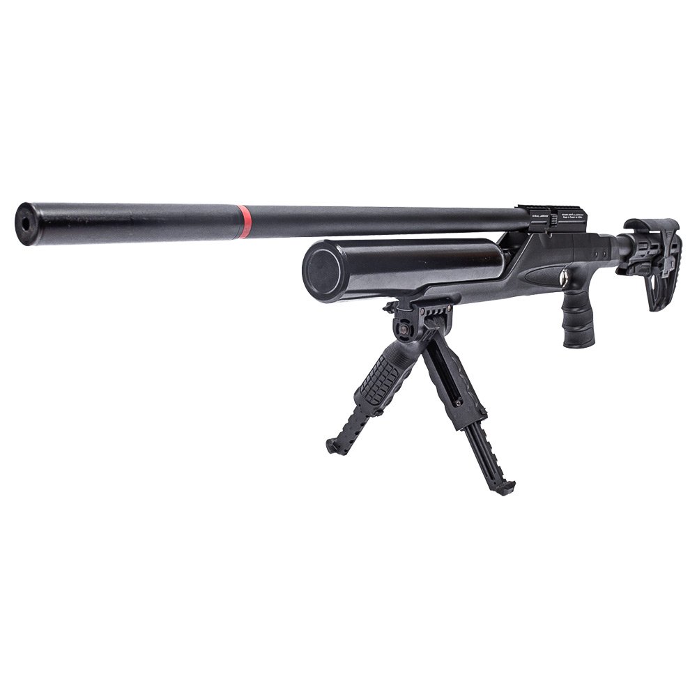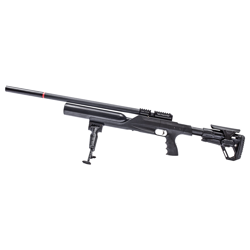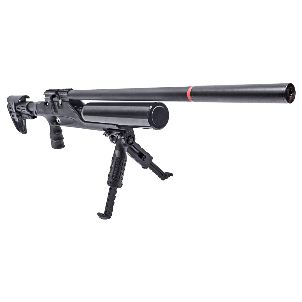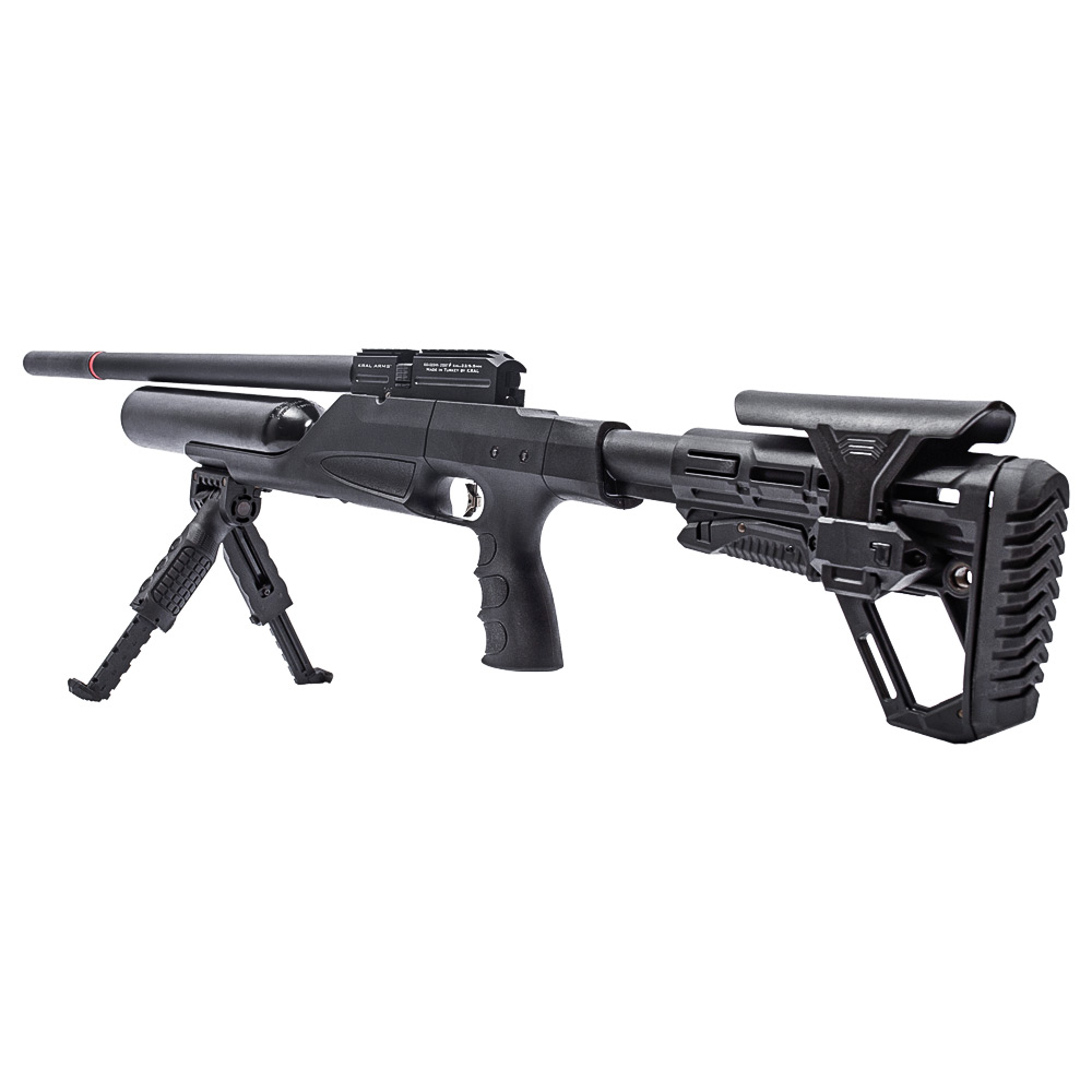 Possui trilho superior dovetail de 11 mm e 20 mm para instalação de miras ópticas e trilho inferior de 20 mm para instalação de acessórios. Acompanha bipé tático que vira grip frontal, oferecendo ótima estabilidade para tiros com apoio, resultando em disparos mais precisos.