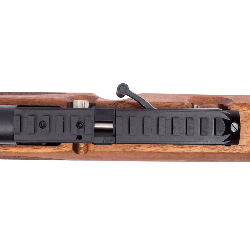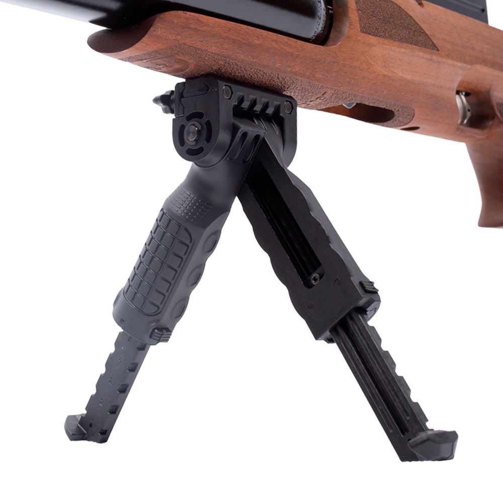 Possui trilho na parte superior dovetail de 11 mm e 20 mm para uso de miras ópticas e trilho inferior de 20 mm picatinny onde você poderá instalar o bipé que acompanha a carabina. Esse bipé tático pode ser utilizado também como um grip frontal.