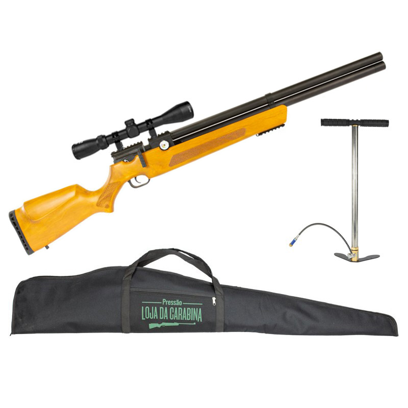 CARABINA LEVIATHAN PCP 6.35MM + LUNETA 3-9X40 + BOMBA MANUAL + CAPA