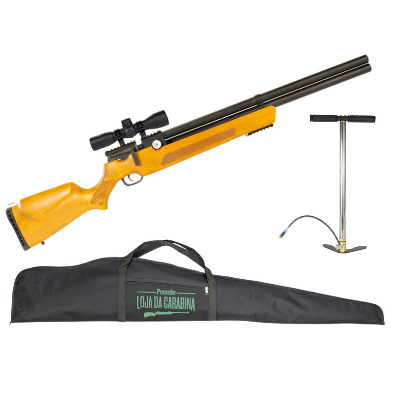 CARABINA LEVIATHAN PCP 6.35MM + LUNETA 4X32 COMPACTA + BOMBA MANUAL + CAPA