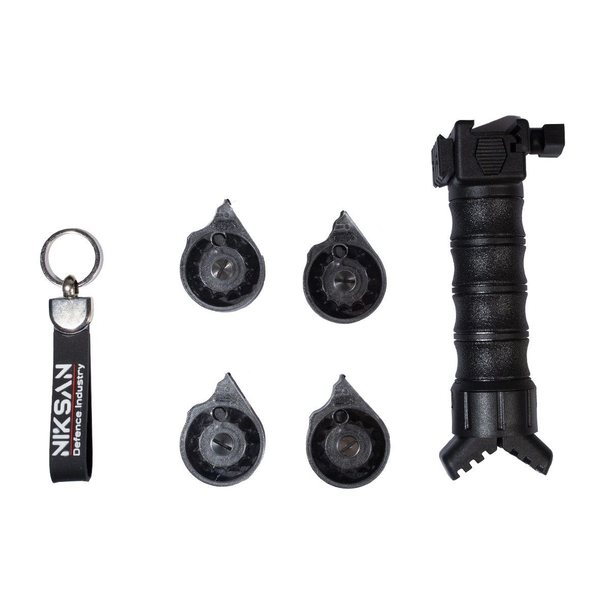 Também acompanha kit de o’rings, chave allen, óleo de silicone para manutenção, flanela de limpeza, bico de enchimento, chave auxiliar para recarga dos magazines e um chaveiro personalizado da Niksan.
