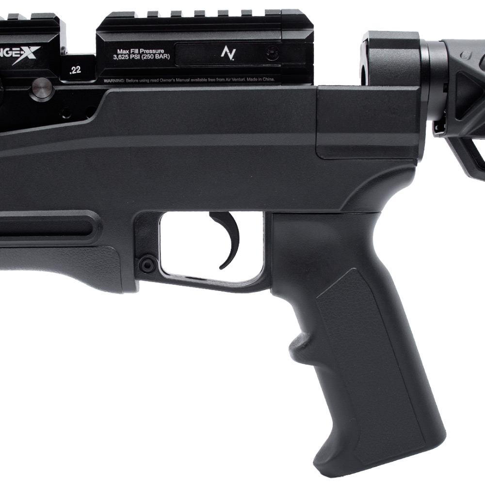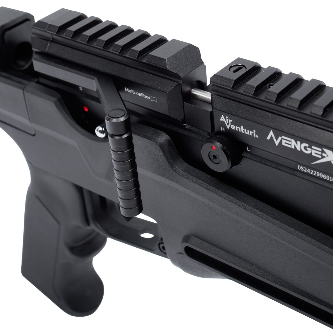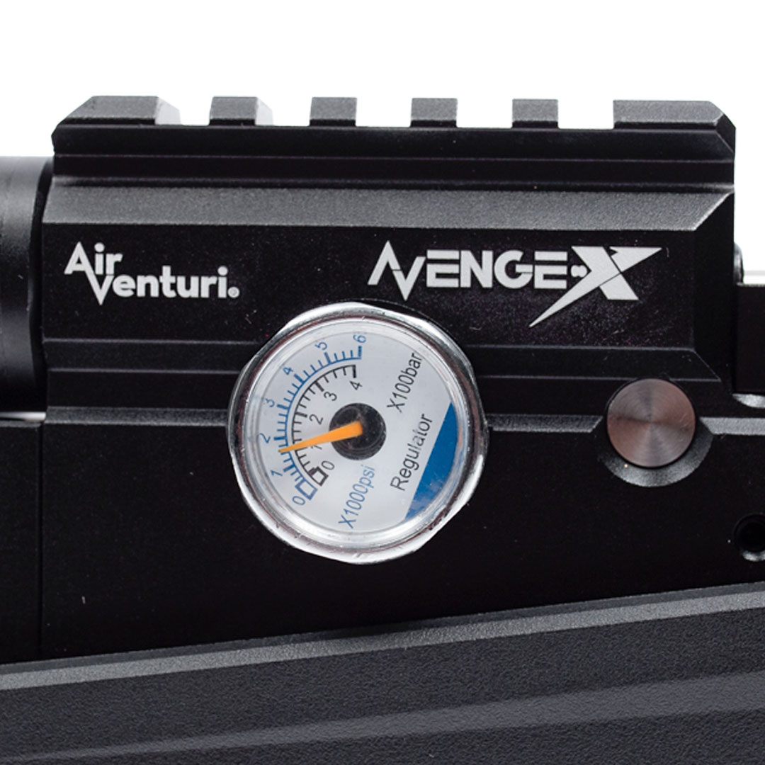 A carabina Avenge-X X1 BT conta com uma válvula reguladora com ajuste externo e um ajuste externo da mola do martelo.
