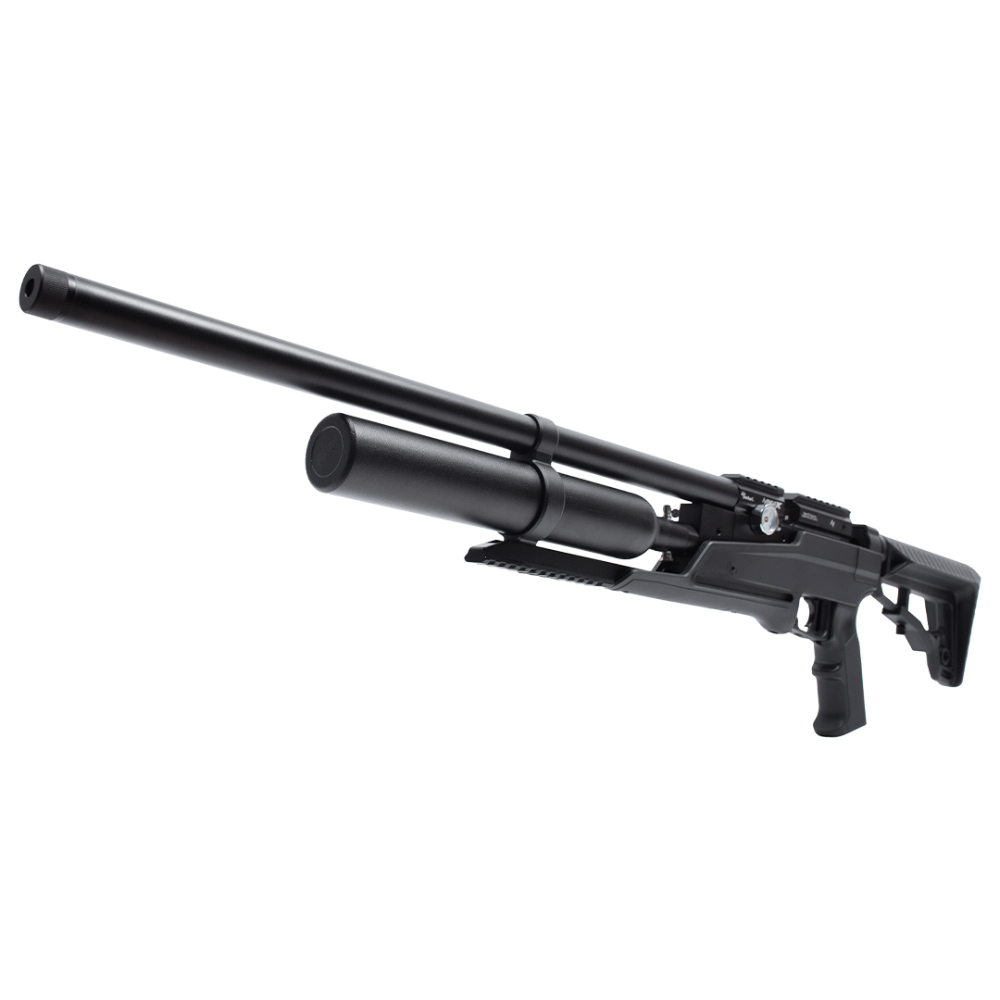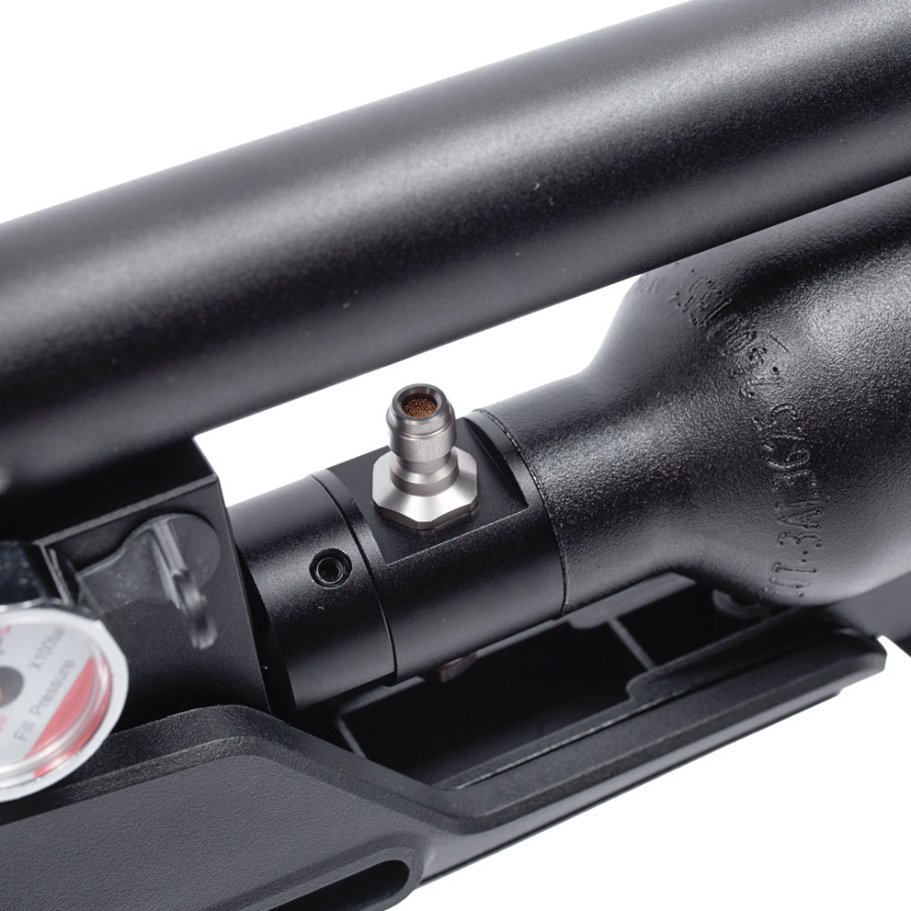 Seu cilindro de ar tem capacidade de 360 cc, opera sob uma pressão máxima de trabalho de 250 bar, o que oferece uma autonomia de disparos excelente por carga, permitindo sessões de tiro mais longas.