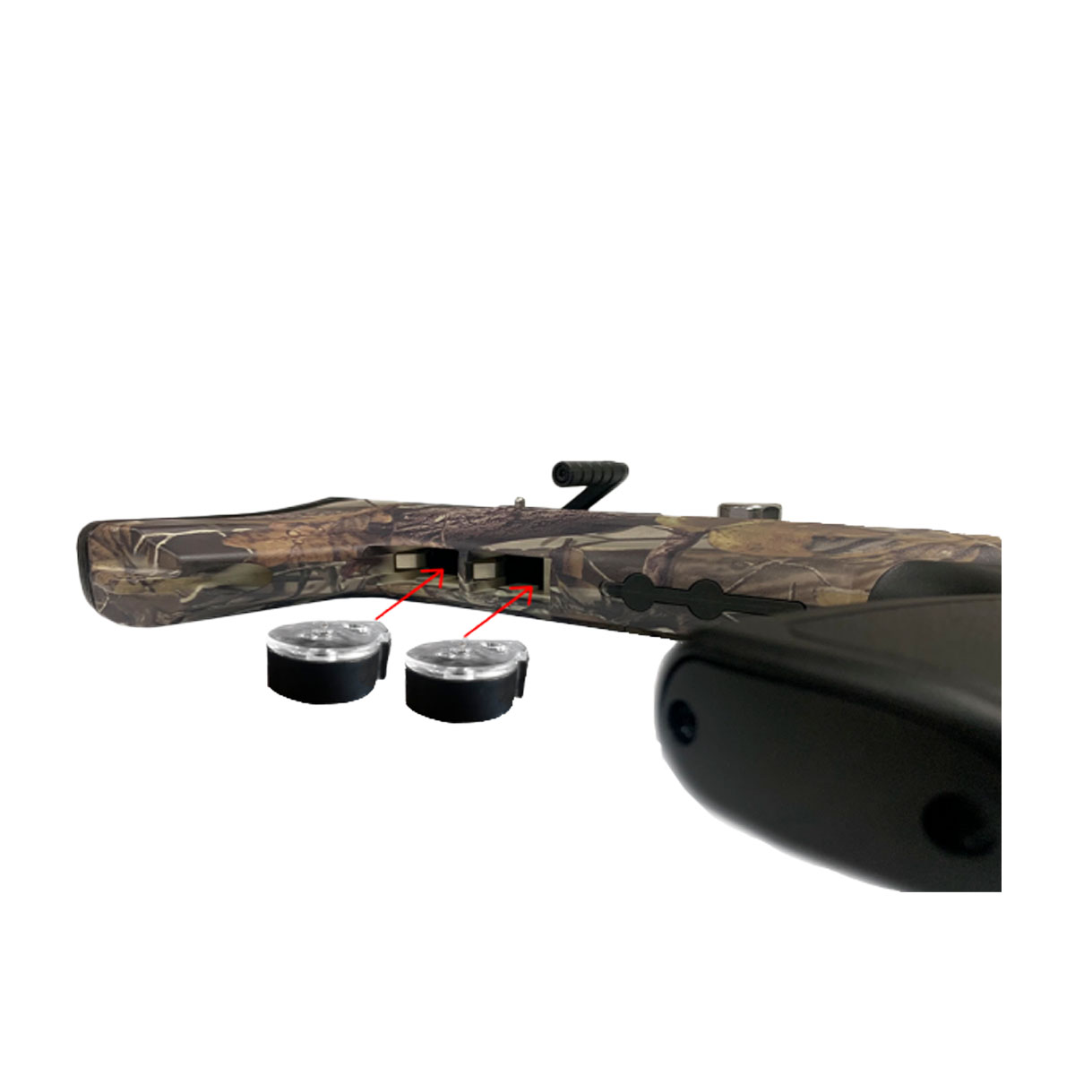 Logo ao lado do ajuste fica o porta magazines! Coloque-os ali e tenha muito mais praticidade e rapidez nos disparos.
