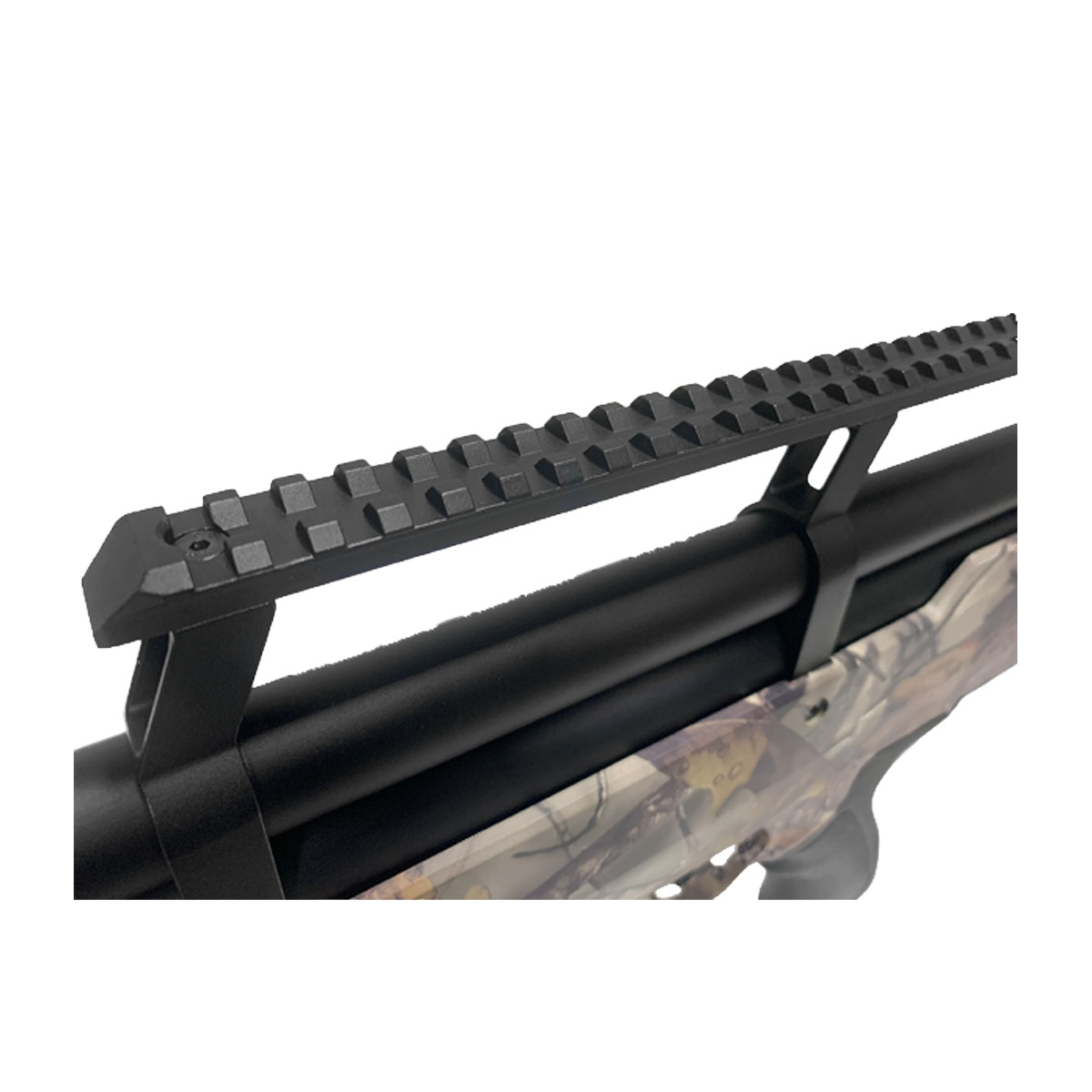Equipada com trilho superior elevado de 20 mm picatinny onde você poderá instalar sua luneta ou red dot. É altamente recomendado o uso de uma mira óptica nessa carabina, pois ela não possui conjunto de mira aberta instalada. Possui também trilhos na parte inferior para uso de bipé para disparos com apoio.