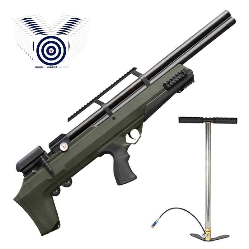 CARABINA PCP 5.5MM BEHEMOTH PS-R2 VERDE MILITAR BULLPUP + BOMBA MANUAL PCP + ALVOS ROSSI