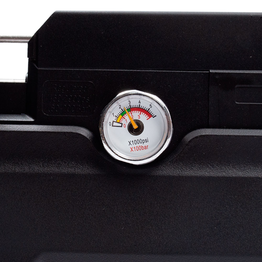 Possui válvula reguladora, além de válvula de alívio automático e válvula de esvaziamento, assim sua Carabina PCP Behemoth R2 estará protegida e também será mais fácil o armazenamento da mesma.
