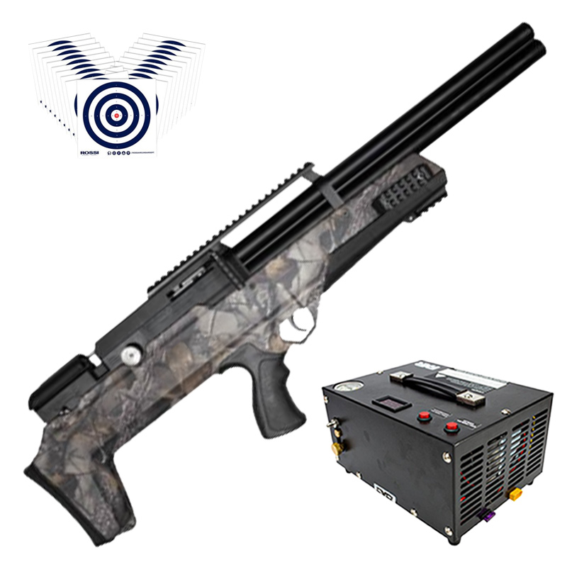 Combo perfeito para a PS-R2-SF 6.35mm! Acompanha Compressor de Ar Portátil FXR para facilitar você a preencher o cilindro da sua carabina e Alvos de Treino Rossi.