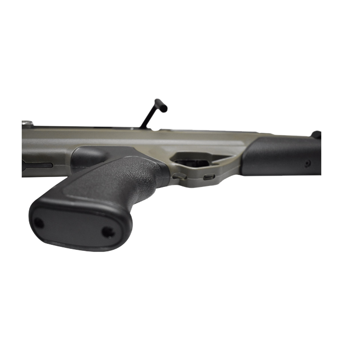 Seu corpo em polímero de alta resistência na cor verde militar proporciona não só leveza (peso de apenas 3.35 kg), como também extrema durabilidade. A pegada é confortável, firme e ambidestra, com punho ergonômico e empunhadura que favorecem longas sessões de tiro sem desconforto.