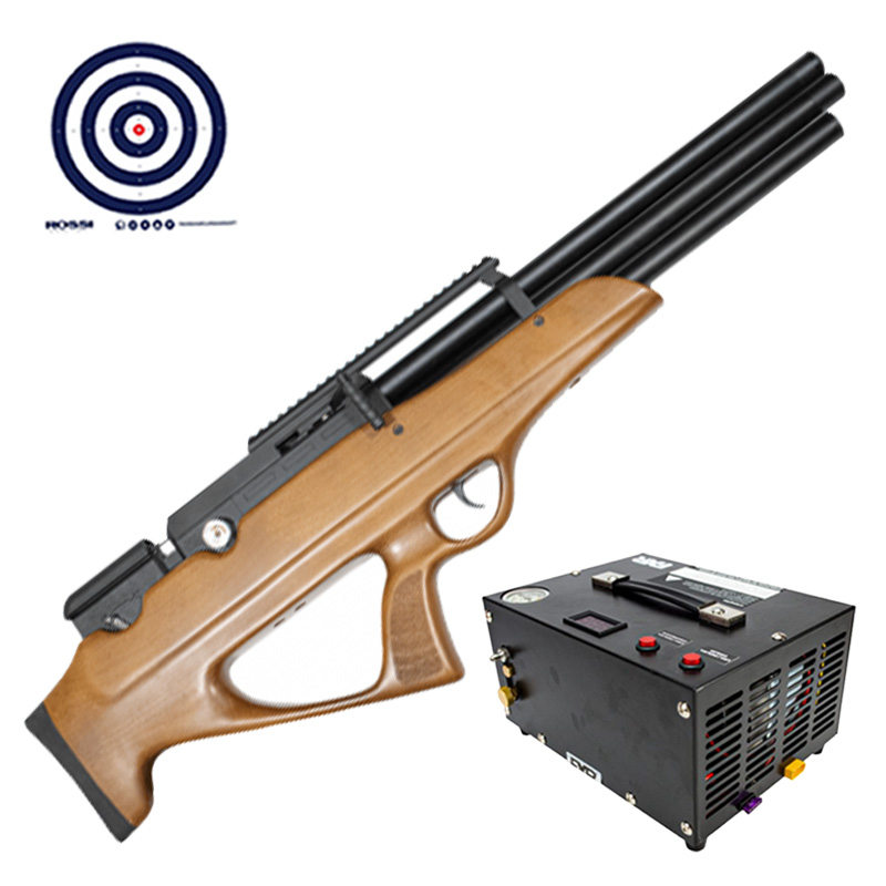 Carabina PCP Nova Vista Bullpup Behemoth PS-R3-SF Wood 5.5mm + Compressor de Ar Portatil + Alvos