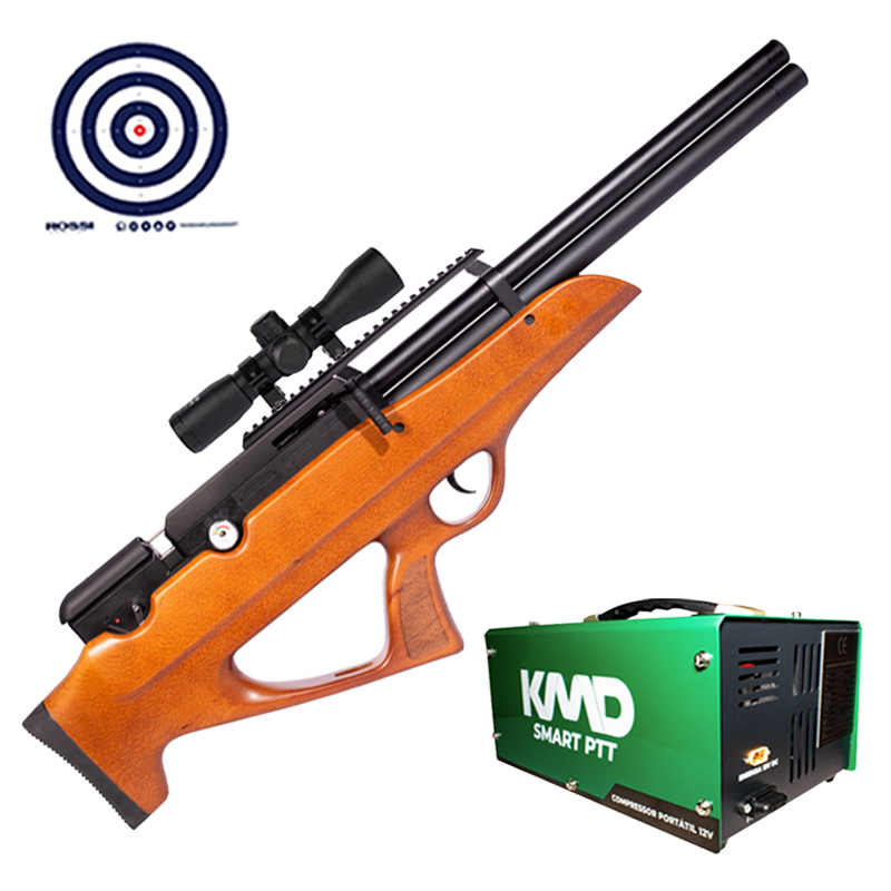 Carabina PCP Nova Vista Bullpup PS-R2-SF Wood 5.5mm + Compressor de AR + Luneta 4x32 + Alvos