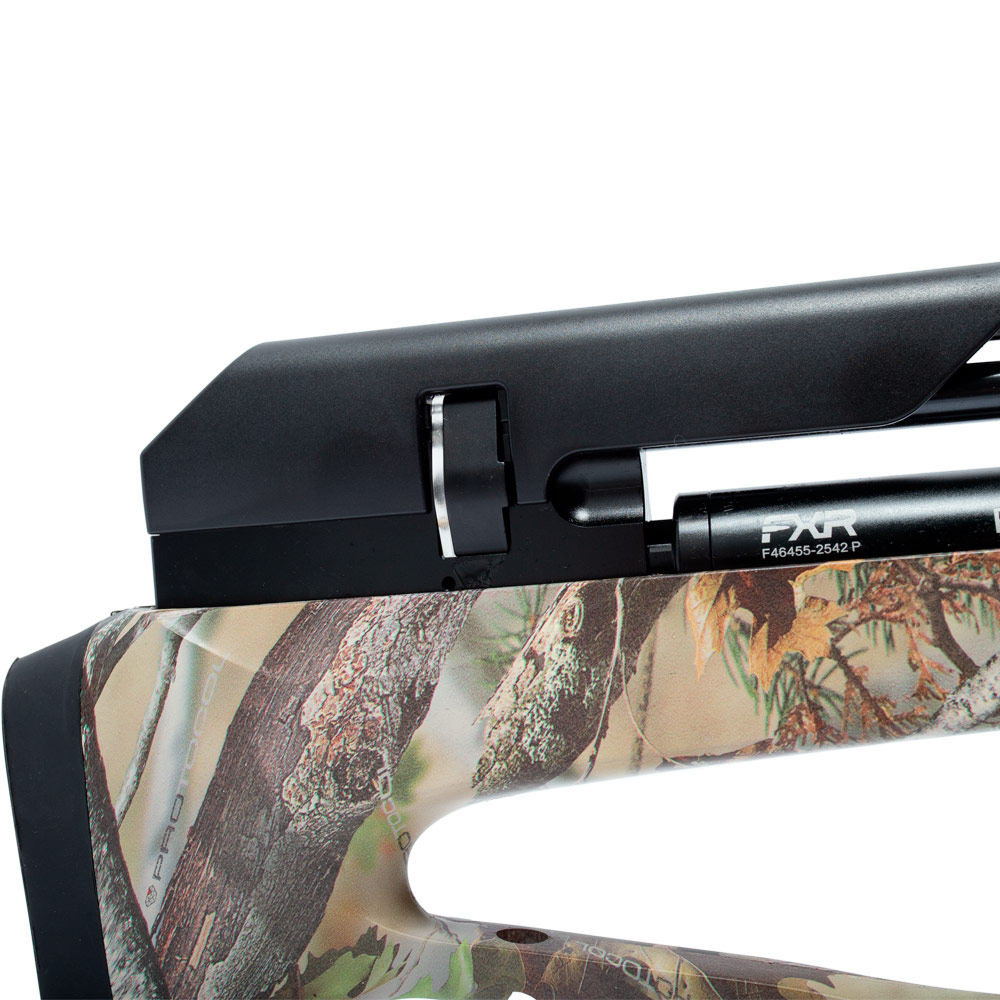 Com sistema PCP, conta com cilindro de ar de 265 cc que trabalha em 250 BAR (25 MPa), entregando autonomia aproximada de 75 disparos por carga completa. Possui válvula reguladora, garantindo pressão estável e consistência nos disparos. Para recarga, utilize bomba manual, compressor ou scuba.