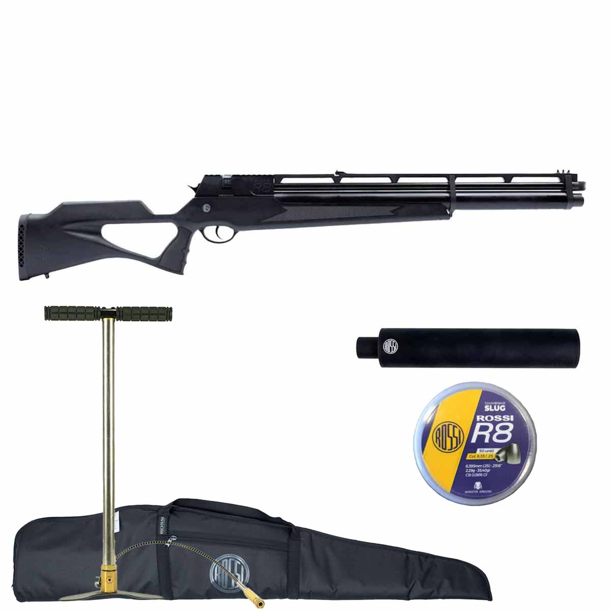 Carabina PCP R8 Black 6.35mm + Capa + Bomba Manual PCP