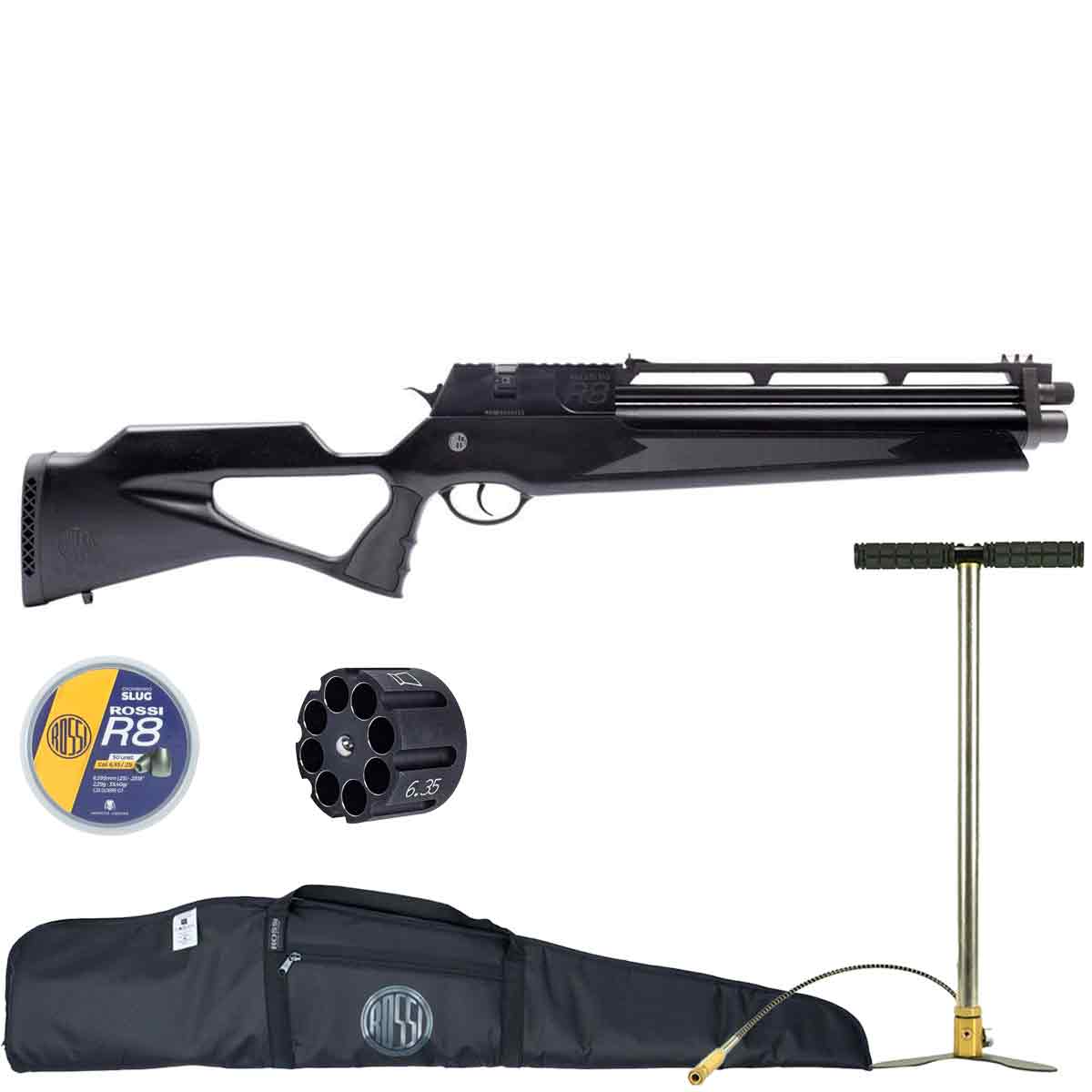 Carabina PCP R8 Short Black 6.35mm + Magazine R8 + Chumbinho R8 50Un + Capa + Bomba Manual PCP