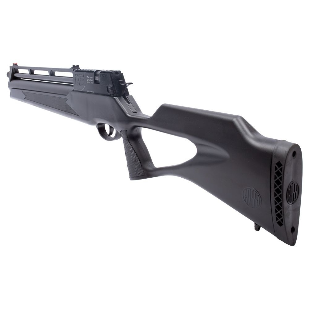 Equipada com cilindro reforçado de 270 cc e pressão máxima de 275 BAR, a R8 Short oferece excelente autonomia, permitindo até 80 disparos em ação dupla ou cerca de 40 disparos em ação simples. O modelo conta com disparo por repetição manual, estrutura robusta em metal e a consagrada coronha em polímero thumbhole da linha R8, que proporciona empunhadura firme, conforto e controle mesmo em tiros de alta potência. A nova geração da R8 traz melhorias importantes, como castelo em alumínio, trilho Picatinny 22 mm integrado e novo magazine com vedação aprimorada, garantindo maior eficiência, confiabilidade e facilidade na instalação de lunetas e acessórios.