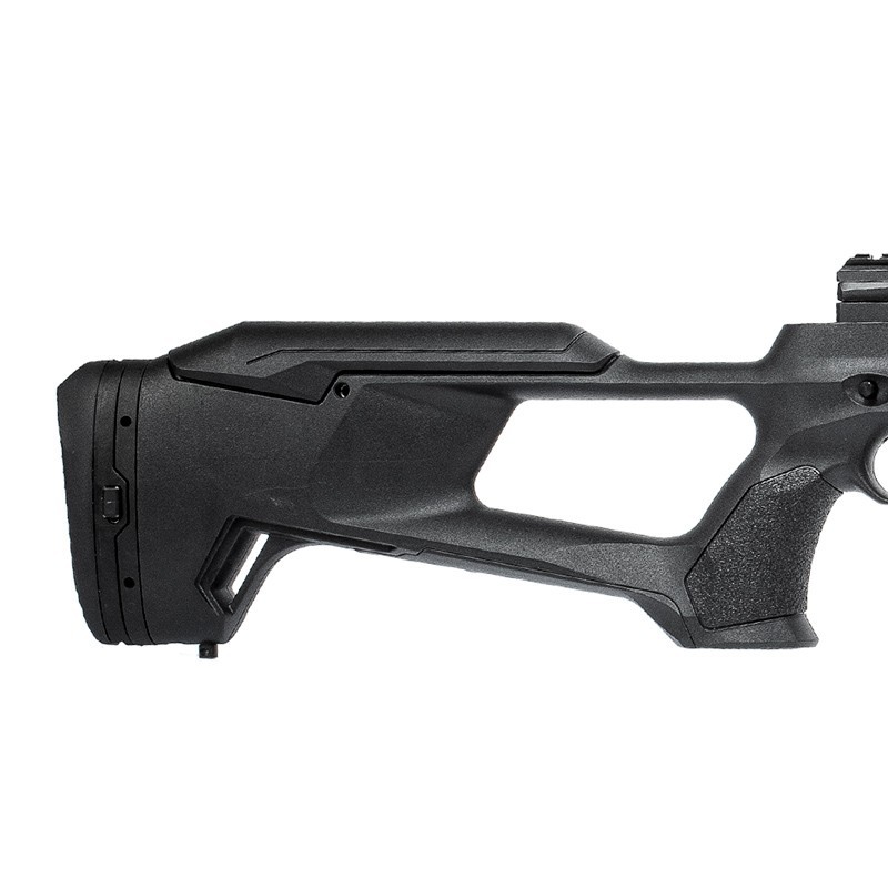 É um linda carabina PCP com coronha tática que tem um visual diferenciado que entrega alto conforto no manuseio. Sua empunhadura tática facilita a pegada junto com o acabamento texturizado. Possui engate para bandoleira para facilitar o transporte da carabina durante locomoção.