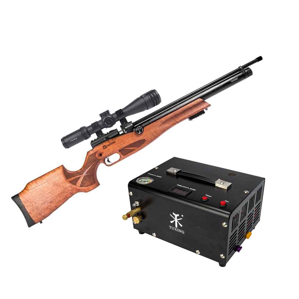 Carabina PCP Reximex Daystar Wood VR + Luneta EOS 4-16x44 AOE II T-Eagle + Compressor PCP Rossi