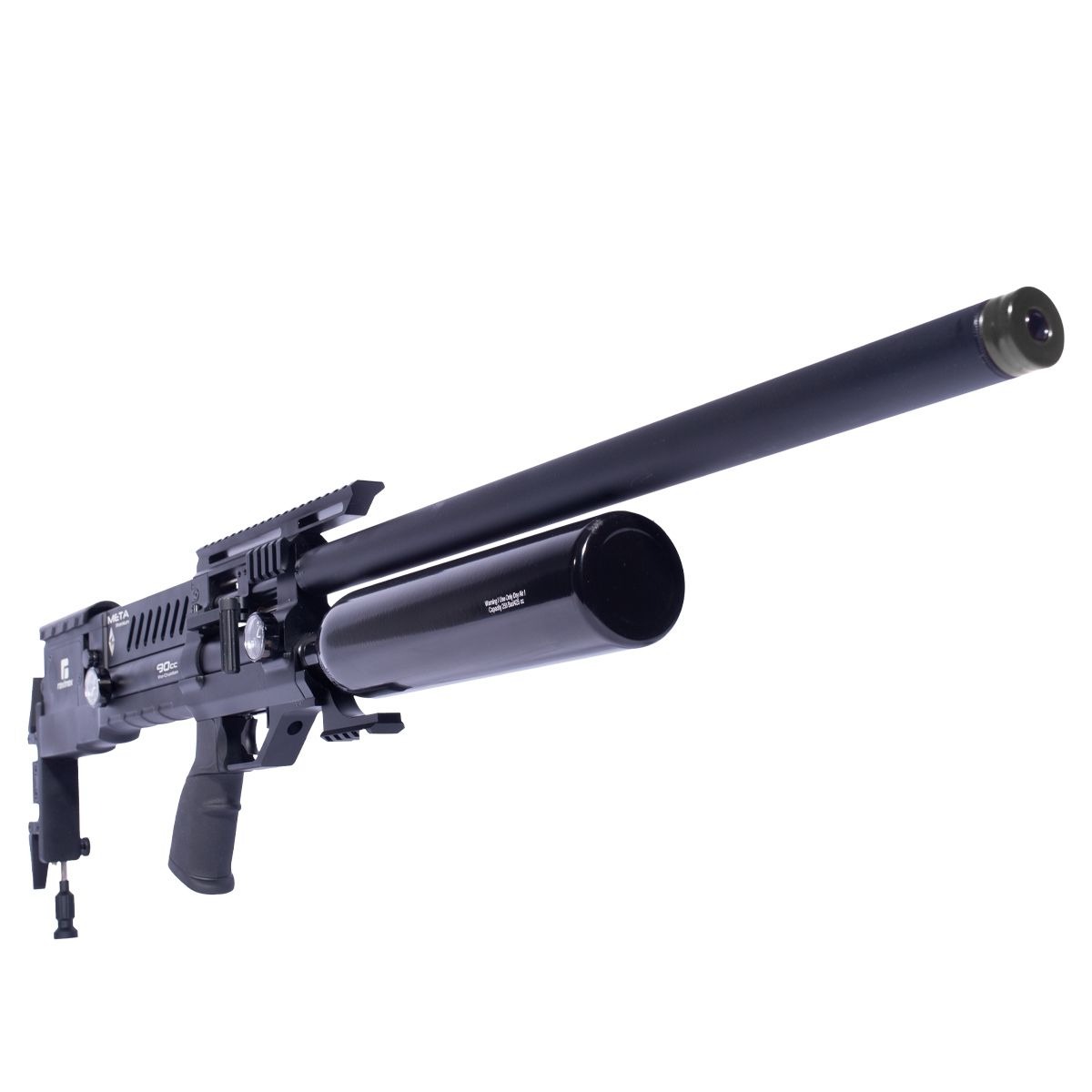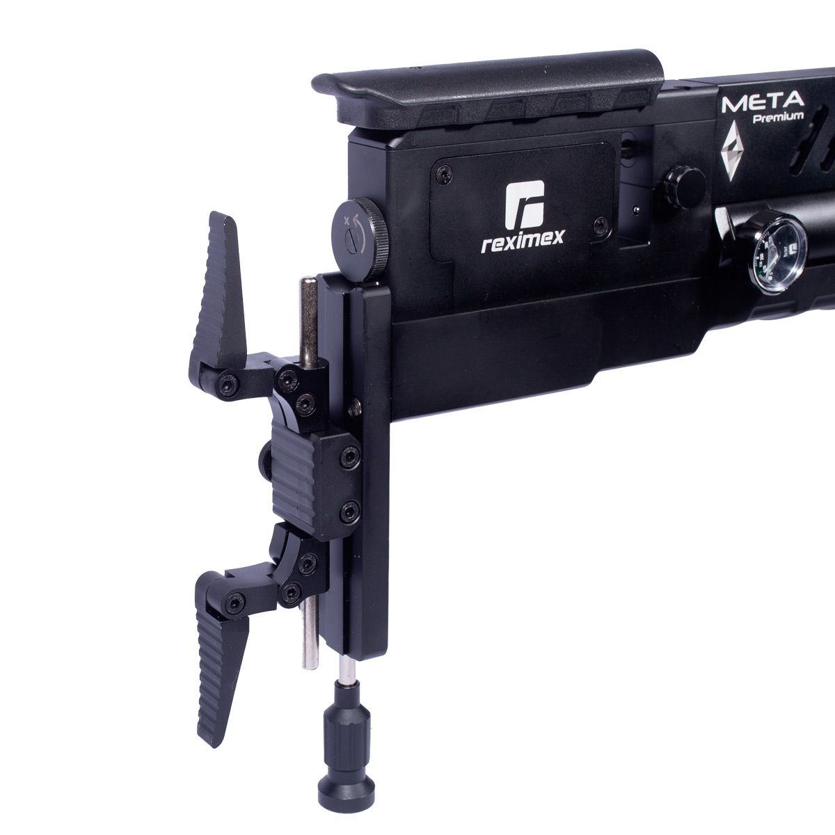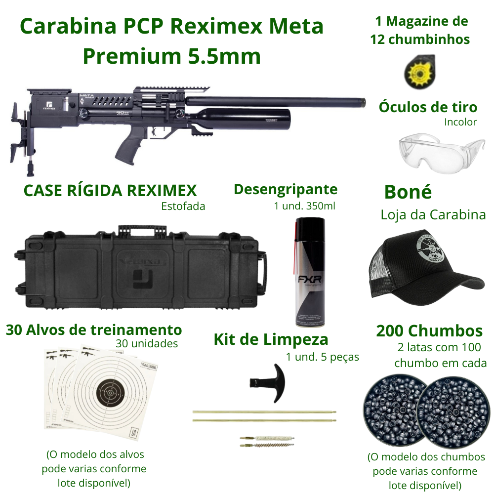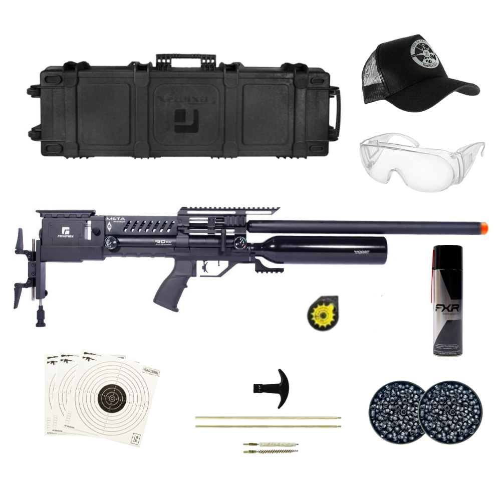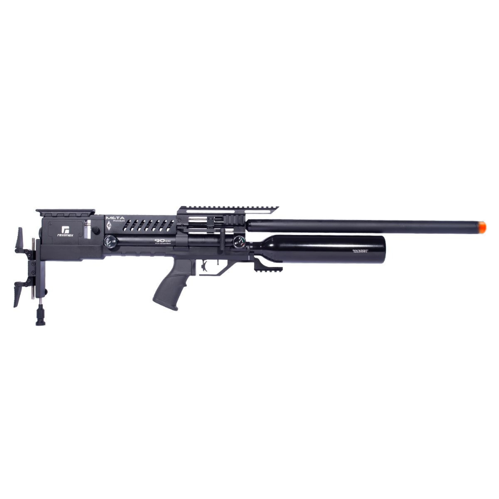 Carabina PCP modelo Meta Premium, fabricada pela Reximex no calibre 5.5 mm (.22), na cor preta. Trata-se de um modelo de alto desempenho técnico, alcançando velocidade de até 304 m/s (1000 fps) e energia aproximada de 54.2 joules no calibre 5.5 mm.