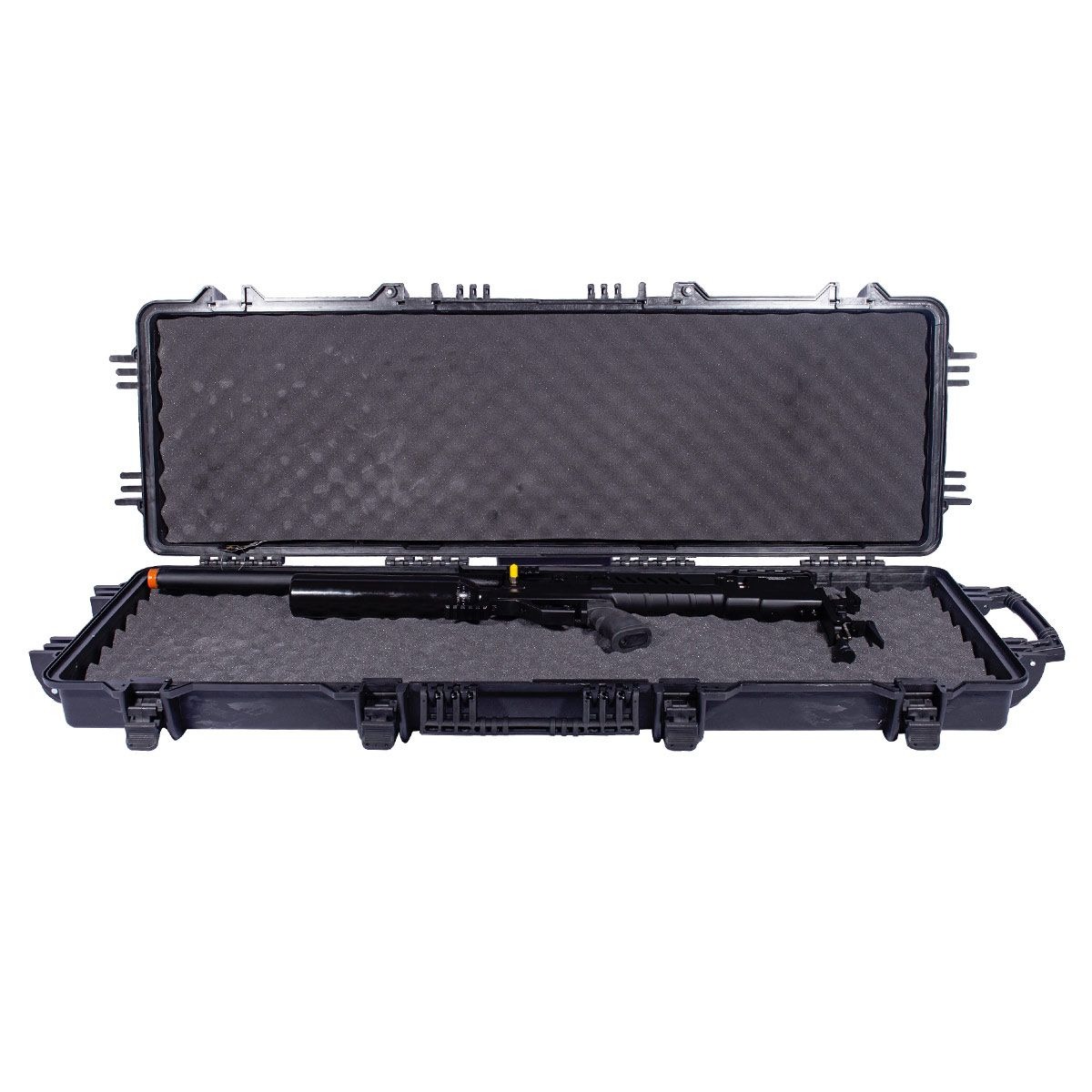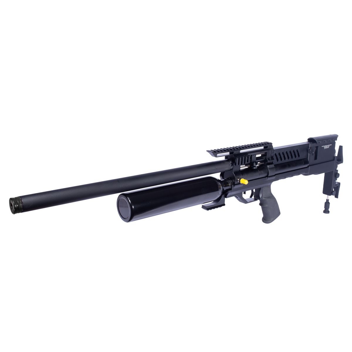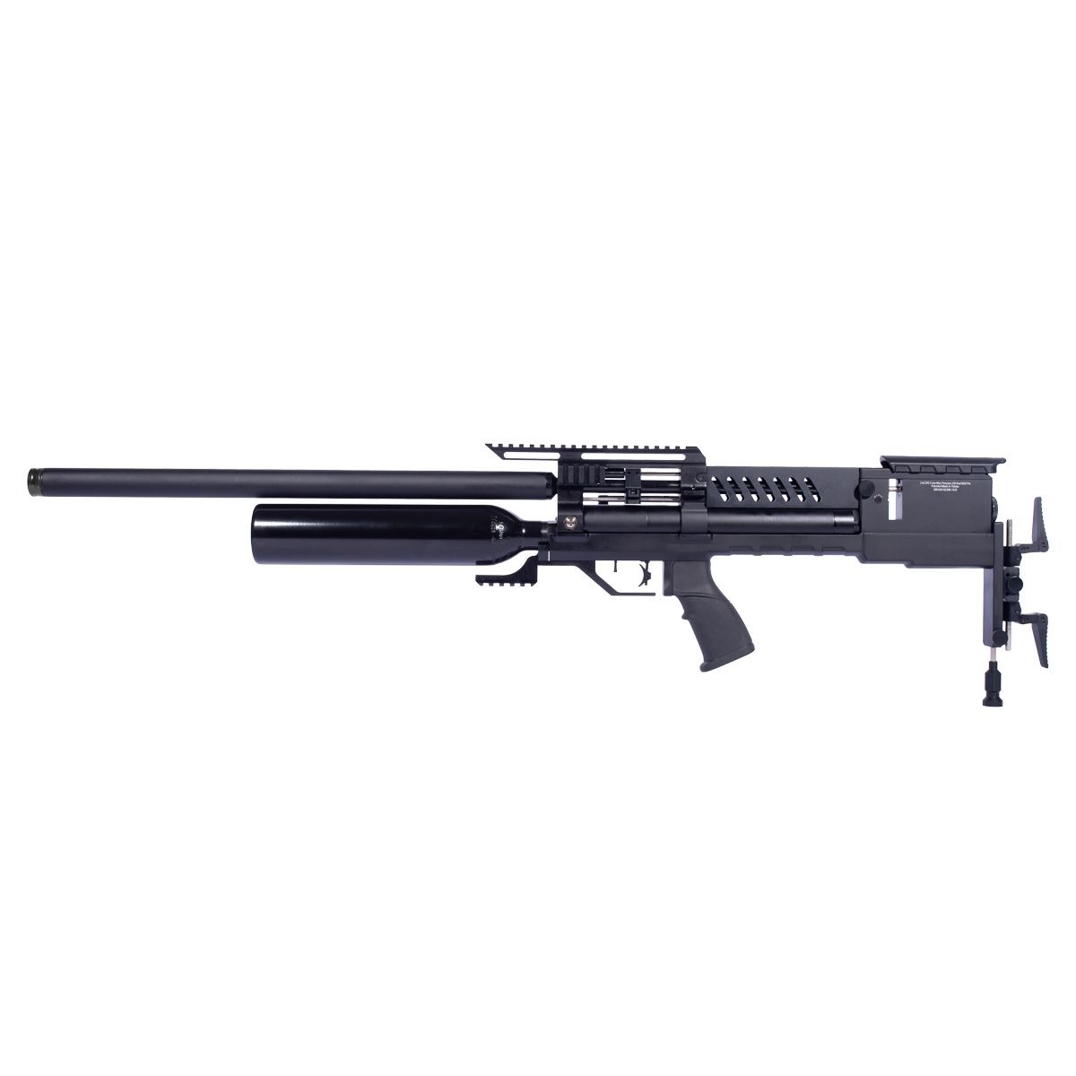 Equipada com cano de 700 mm, projetado para oferecer elevada precisão. Conta com dispositivo frontal integrado para controle do fluxo de ar.