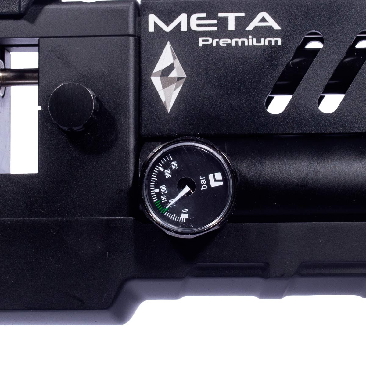 Carabina PCP modelo Meta Premium fabricada pela Reximex no calibre 5.5 mm na cor preta. Essa Carabina é extremamente potente! Alcança velocidade de 304 m/s que equivale a 1000 fps! Disparos com uma potência de incríveis 54.2 joules no calibre 5.5 mm.