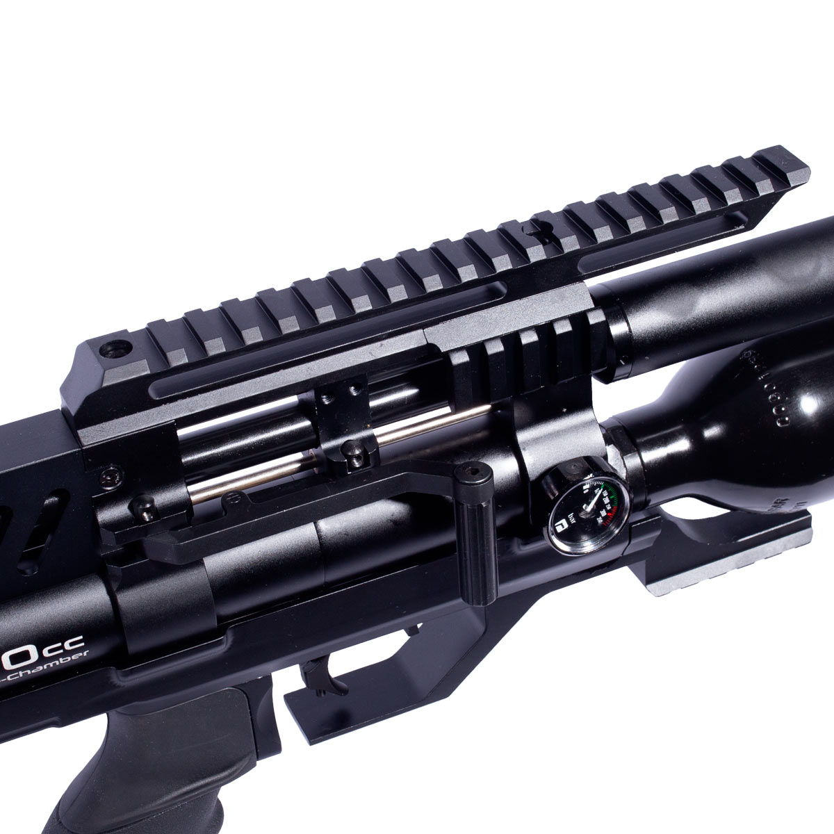 Equipada com um cilindro dianteiro em fibra de carbono que tem capacidade de ar de 425cc. Também possui uma pré-câmara com capacidade de 90 cc, totalizando em uma capacidade total de 515cc.
