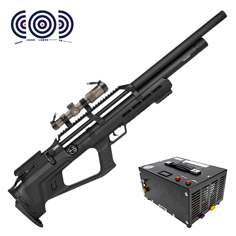 CARABINA PCP ZONE REXIMEX BULLPUP 5.5 MM + LUNETA 1.2-6X24 + COMPRESSOR FXR + ALVOS ROSSI