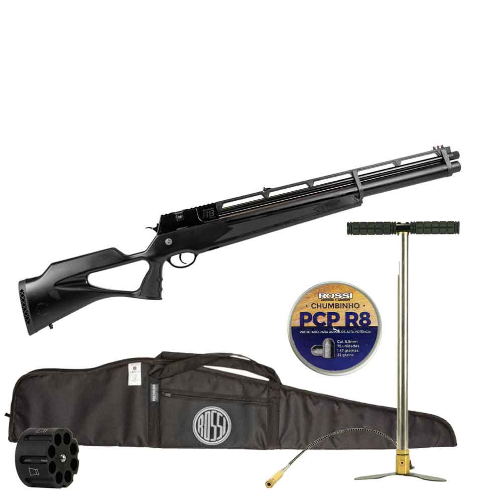 PCP Rossi R8 Black + Magazine + Chumbo + Capa + Bomba de Recarga