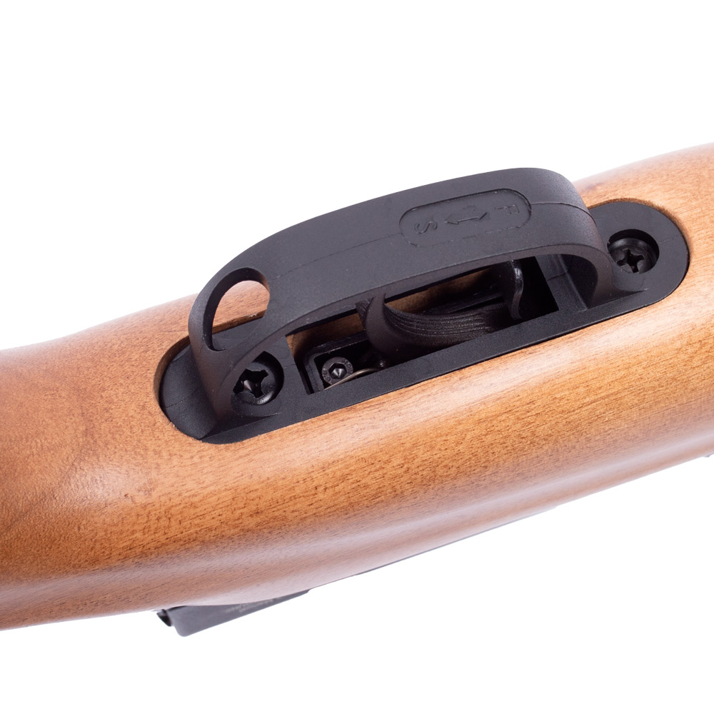 Além do ajuste de martelo, a Beeman 1332 Raider conta com ajuste externo do gatilho, ou seja, apenas com uma chave allen, que acompanha a carabina, você pode fazer o ajuste do gatilho, deixando ele mais aliviado para disparos mais precisos.