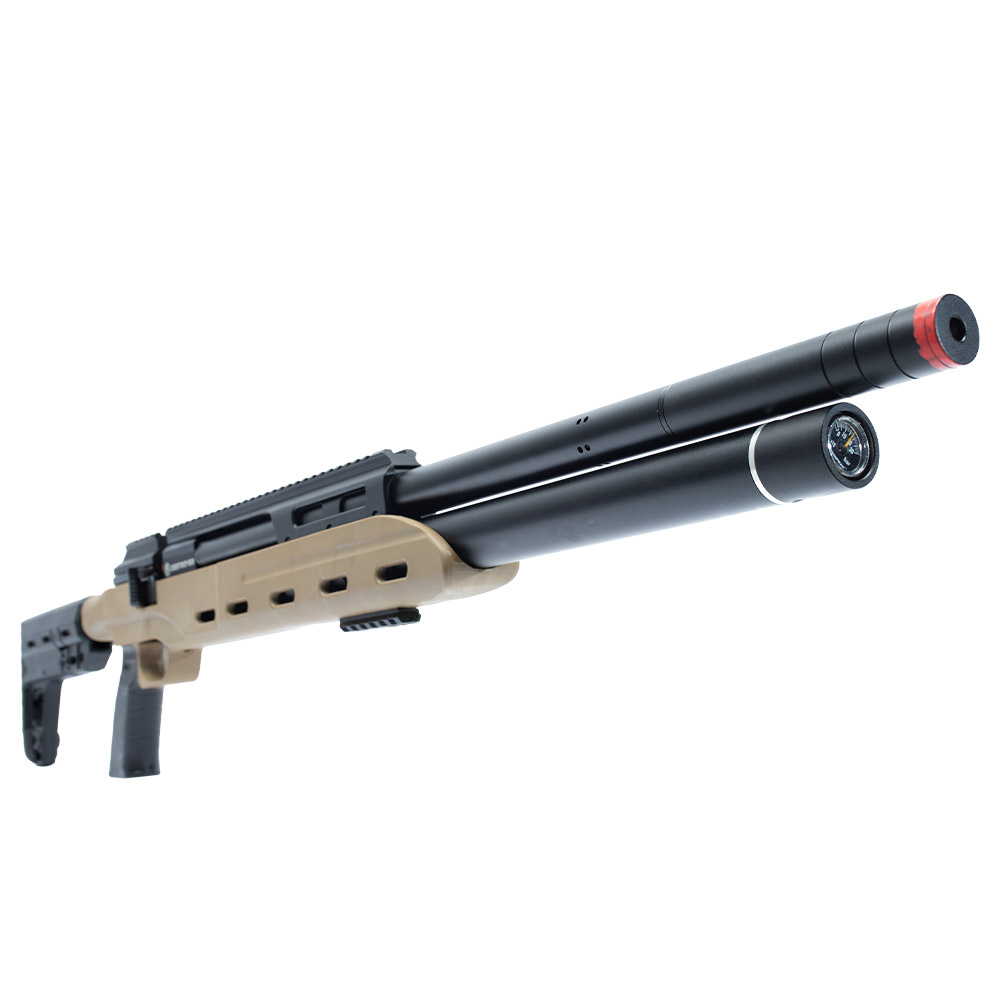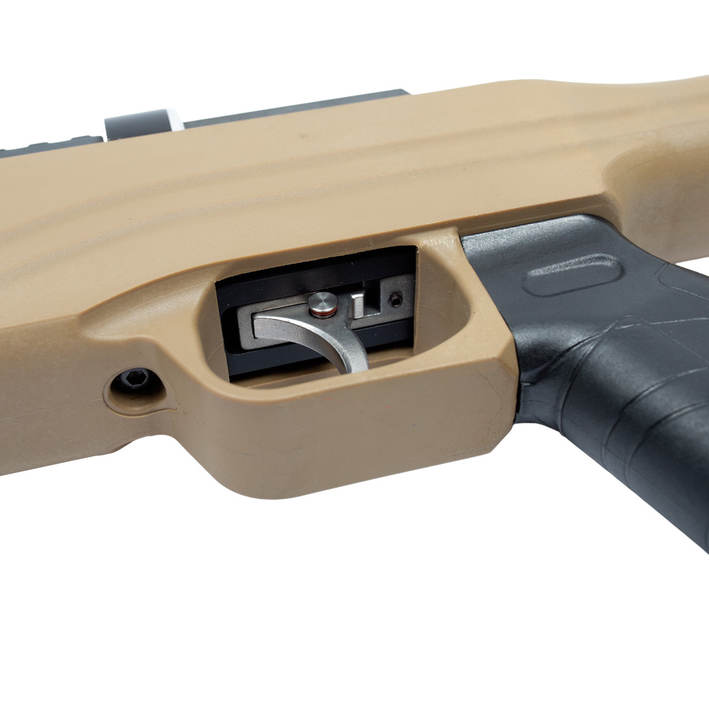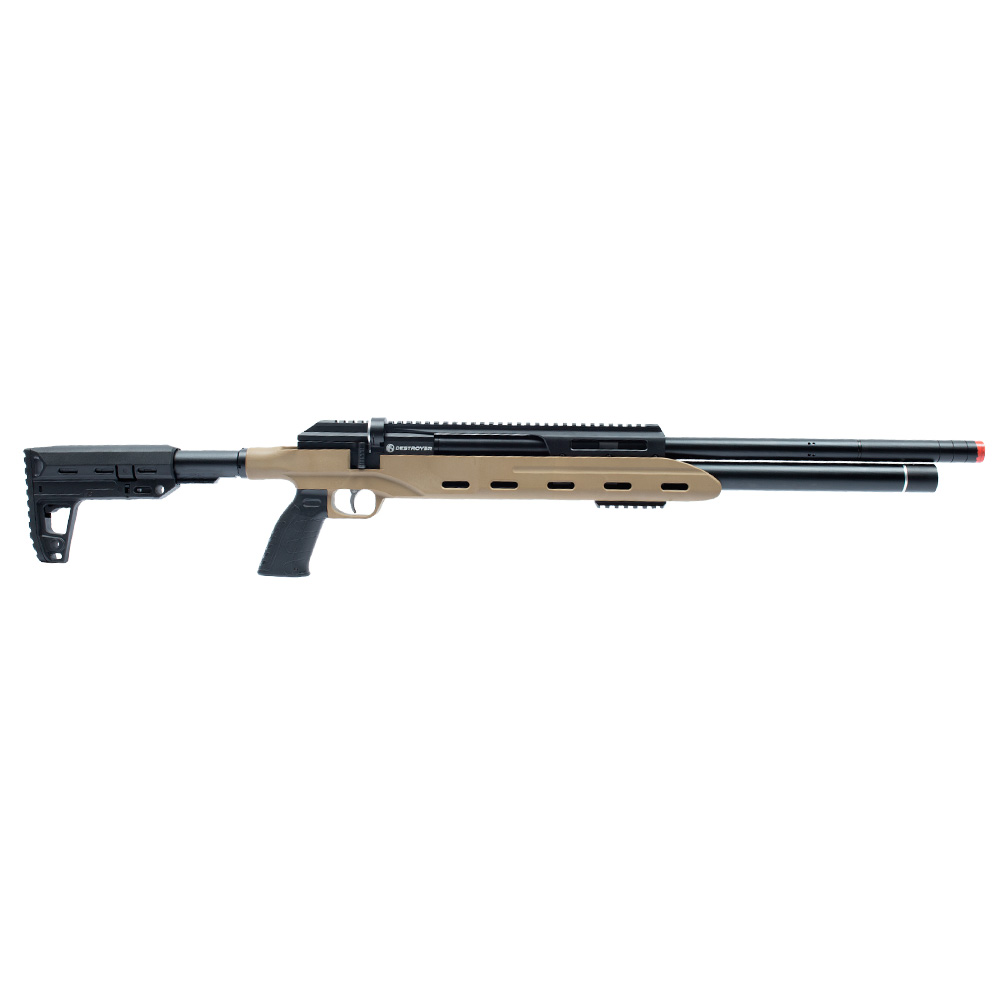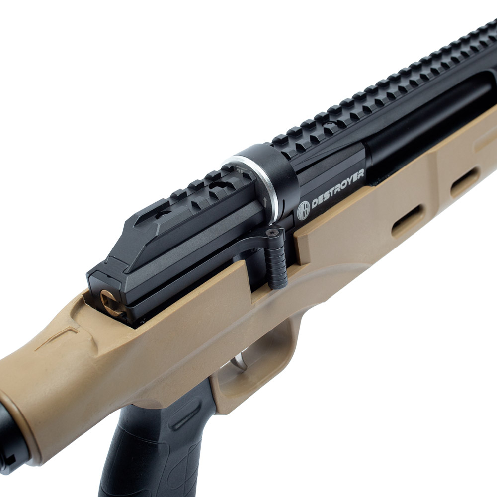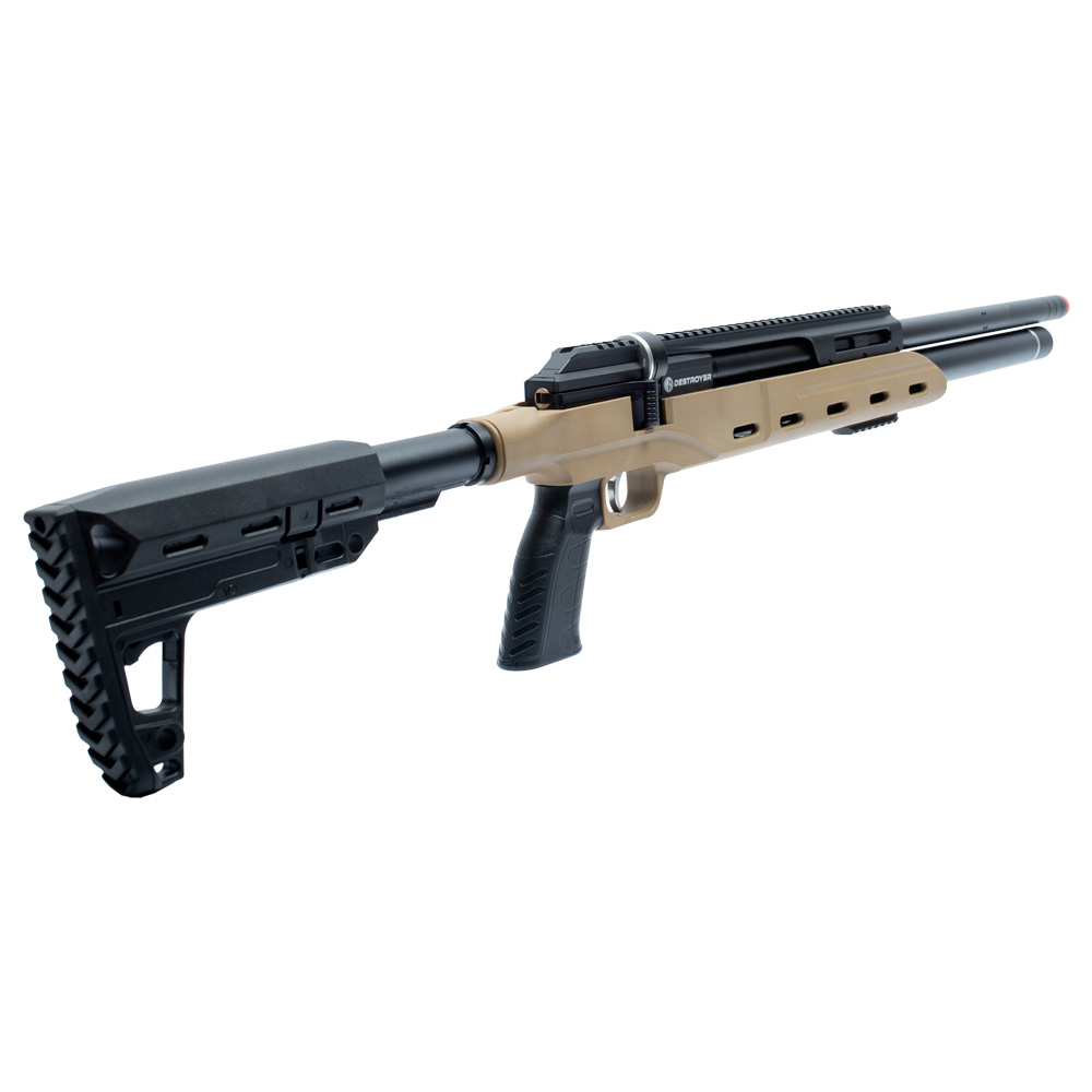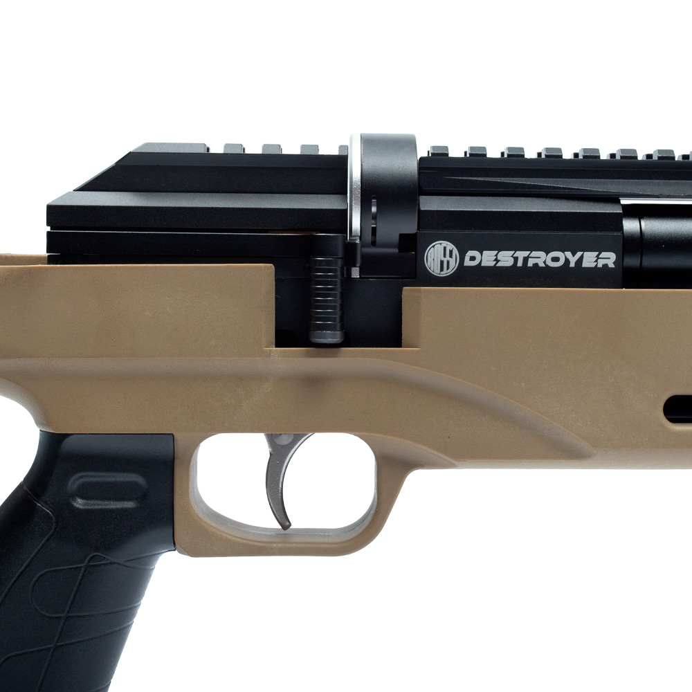 A Rossi Destroyer Semi Auto 6.35mm é uma carabina PCP que une modernidade, potência e um visual tático impressionante. Seu design lembra um verdadeiro rifle de assalto/caça, trazendo uma coronha tática ajustável na elegante cor TAN (desert/coyote), com ergonomia confortável e versatilidade para diferentes estilos de disparo.