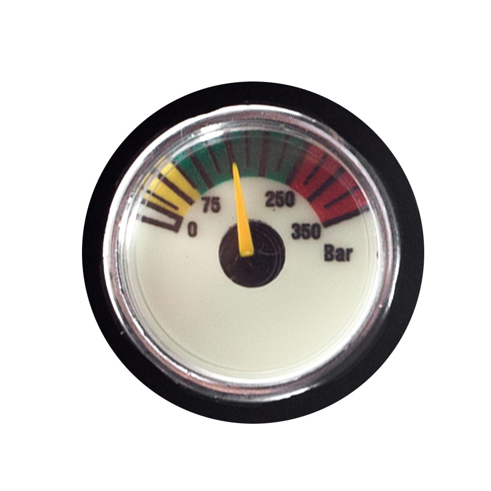 Conta com manômetro que permite o controle da pressão no cilindro.