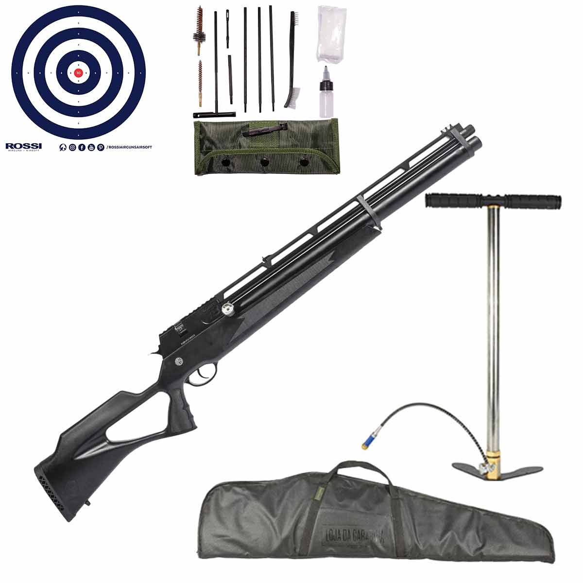 Carabina PCP Rossi R8 Black VR 5.5mm + Bomba Manual PCP + Capa Magnum + Kit de Limpeza + Alvos